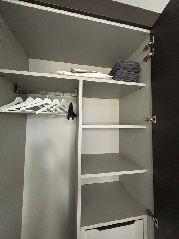 L'appartamento è composto da una zona giorno con divano letto, tavolo con sedie, mobile TV, oltre alla cucina e un terrazzo. Nella zona notte separata troviamo due stanze una con un letto singolo con un armadio e scrivania, l'altra con un letto matrimoniale con armadio, il locale bagno e un ripostiglio con la colonna lavatrice-asciugatrice.