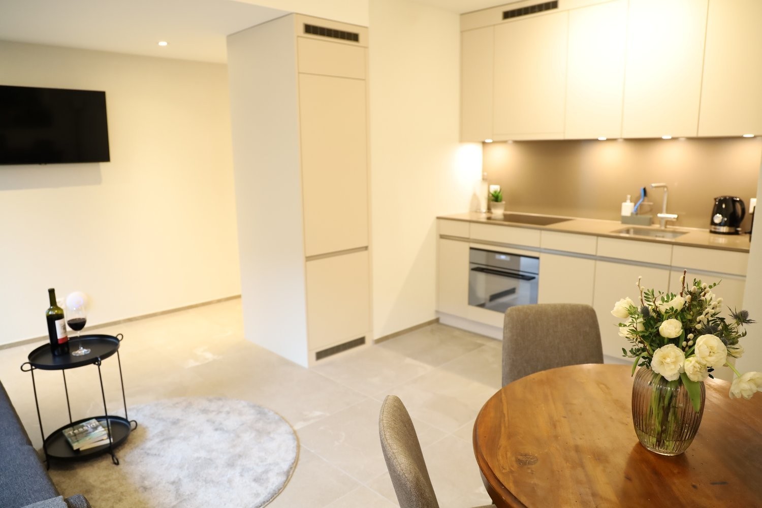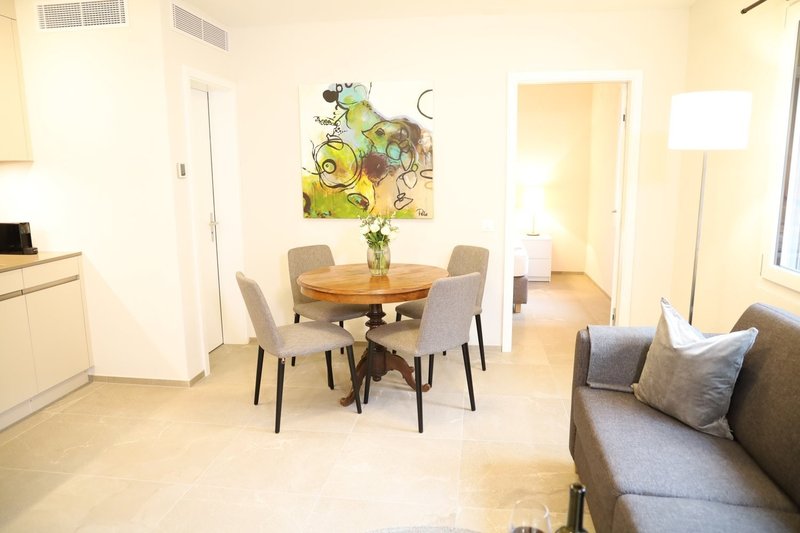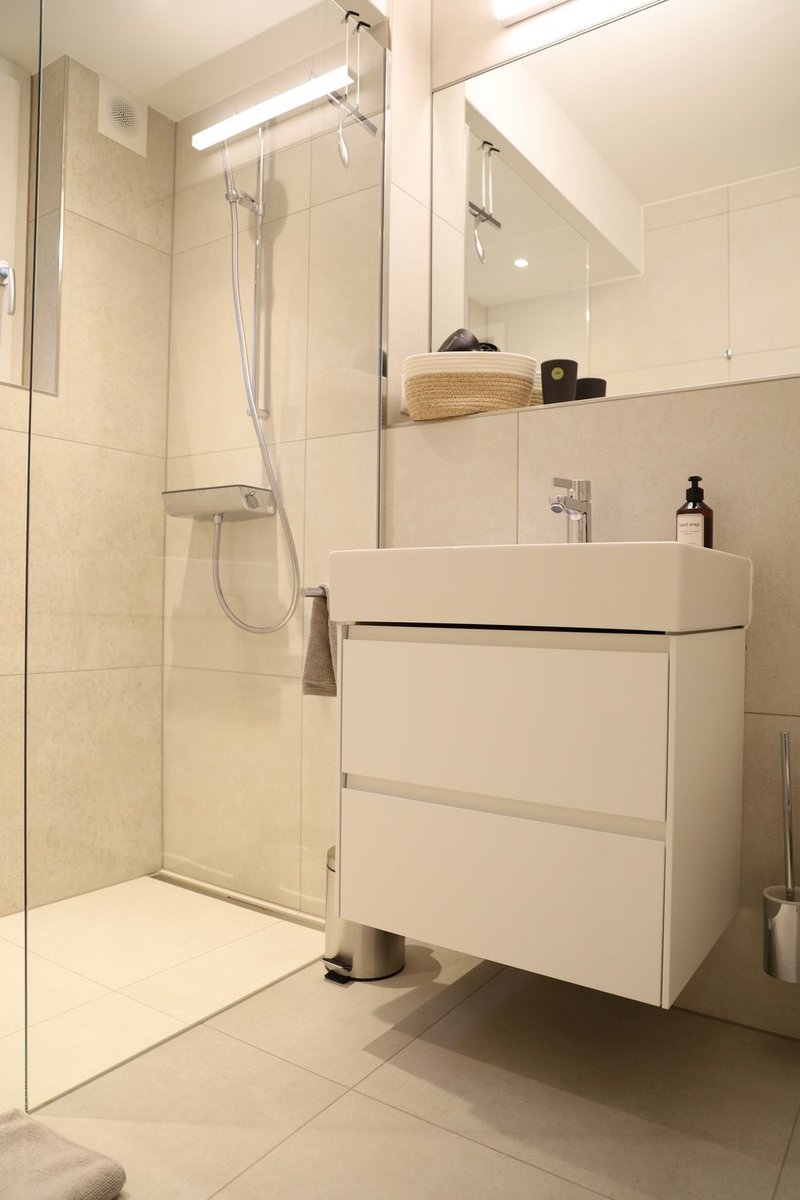 Die Wohnung bietet ein gemütliches Schlafzimmer, ein modernes Duschbad sowie einen offenen Wohn- und Essbereich mit moderner Küche. Von hier aus gelangen Sie direkt auf die einladende Terrasse – ein idealer Platz für entspannte Stunden im Freien.