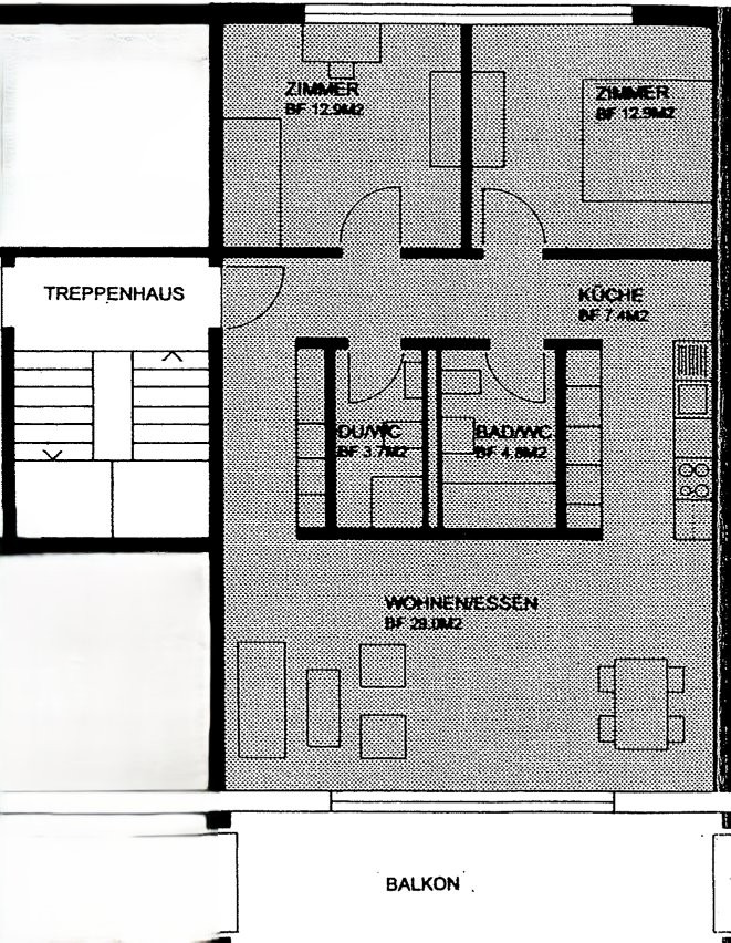 Zusätzlich zur Wohnung kann ein Auto-Einstellplatz für monatlich CHF 120.00 gemietet werden.