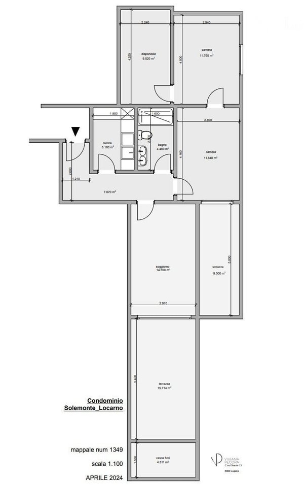 Locarno Monti, via del Tiglio 19B, affittasi splendido e tranquillo appartamento 3 locali, completamente rinnovato al terzo piano così composto: