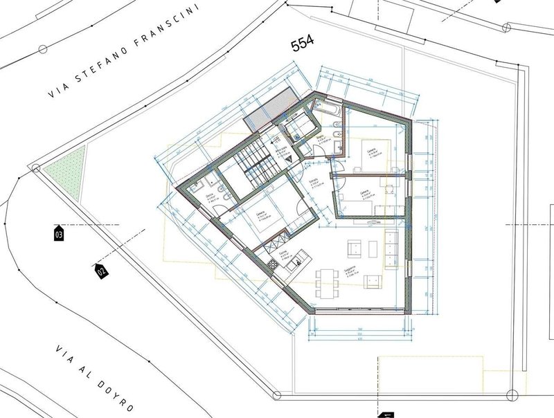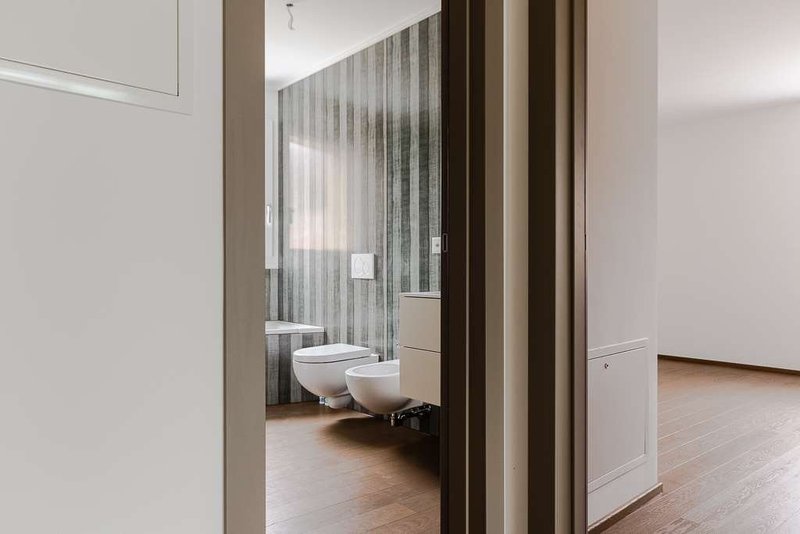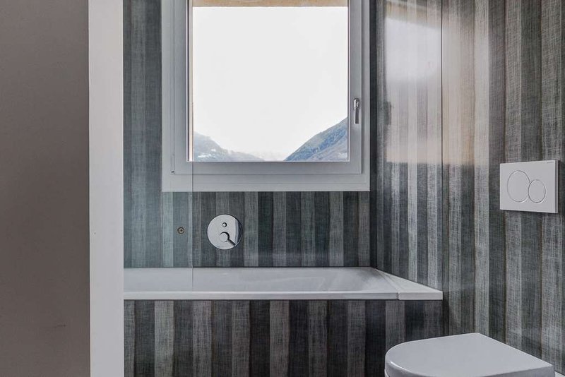 Atrio dingresso, zona living con cucina a vista di circa 42 m2, spaziosa camera da letto matrimoniale con bagno en suite (wc-doccia), due camere singole e un bagno (wc-vasca/doccia) con lavatrice e asciugatrice in colonna. In uso esclusivo una terrazza (roof garden) di 44 m2 con magnifica vista lago e montagne, locale cantina al piano garage, 2 posteggi in autorimessa compresi nell'affitto.