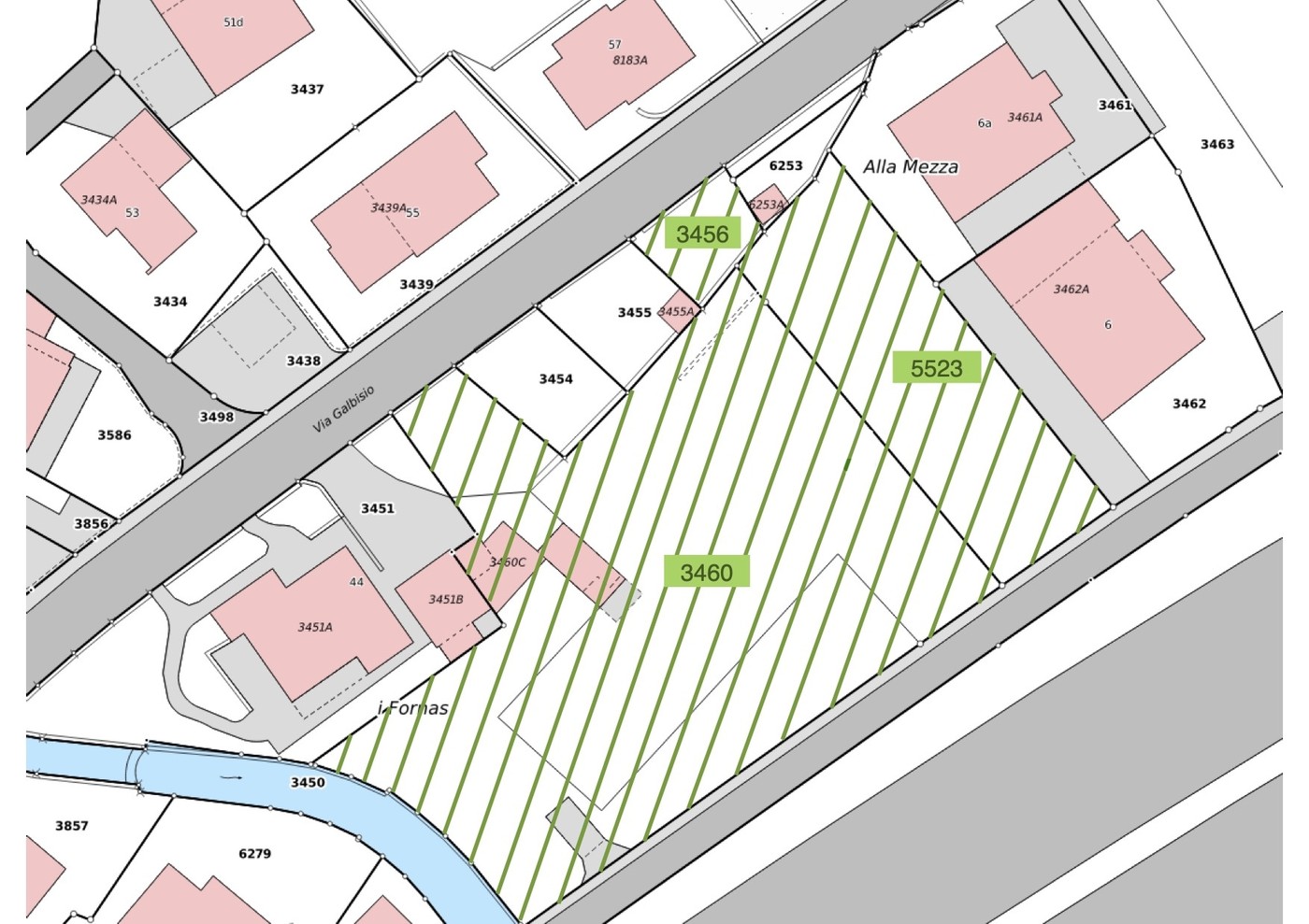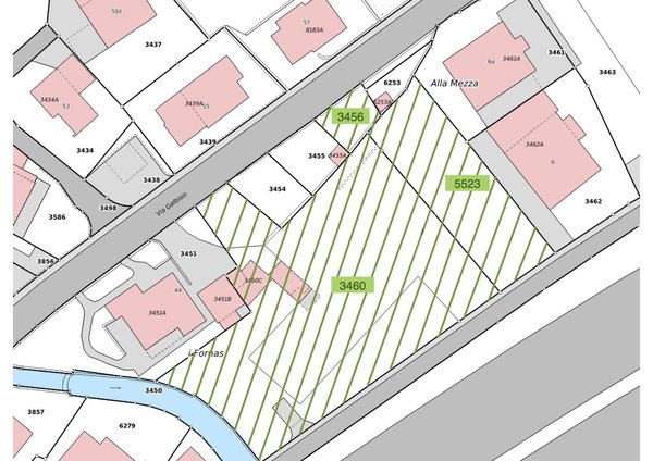 Vendiamo i fondi 3460 (1'708 m2), 5523 (486 m2) e 3456 (77 m2).