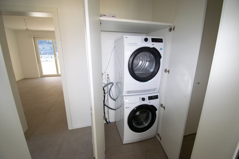 L'appartamento dispone di una lavanderia privata che garantisce il massimo comfort nella vita quotidiana. L'elegante cucina è dotata di elettrodomestici all'avanguardia.
