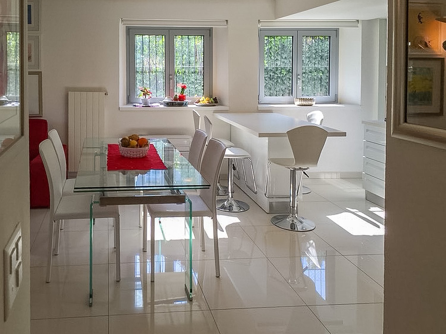 L’appartamento è stato completamente ristrutturato nel 2012 e si presenta in ottime condizioni. Le finiture interne includono pavimenti e rivestimenti in gres, cucina arredata, infissi in alluminio con doppi vetri, aria condizionata nella zona giorno. Il riscaldamento è a gas con erogazione del calore tramite caloriferi.