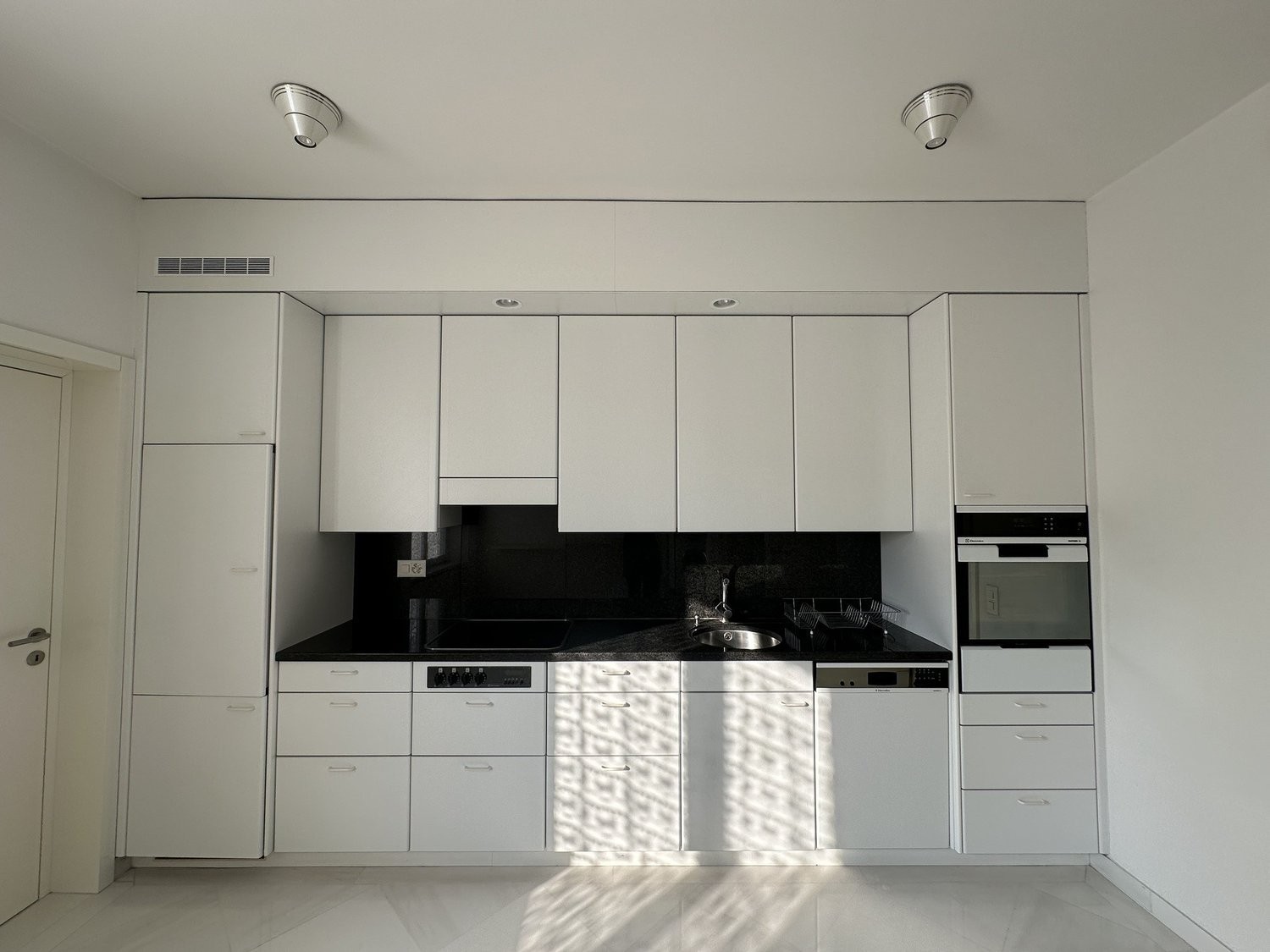 L’appartamento è composto da un ampio ingresso con disimpegno guardaroba e bagno ospiti, una grande cucina abitabile con adiacente ampio locale finestrato ad uso lavanderia e dispensa (inclusa cantinetta vini). La zona giorno è completata da un soleggiato soggiorno triplo di 60mq con caminetto (estetico) e balcone.