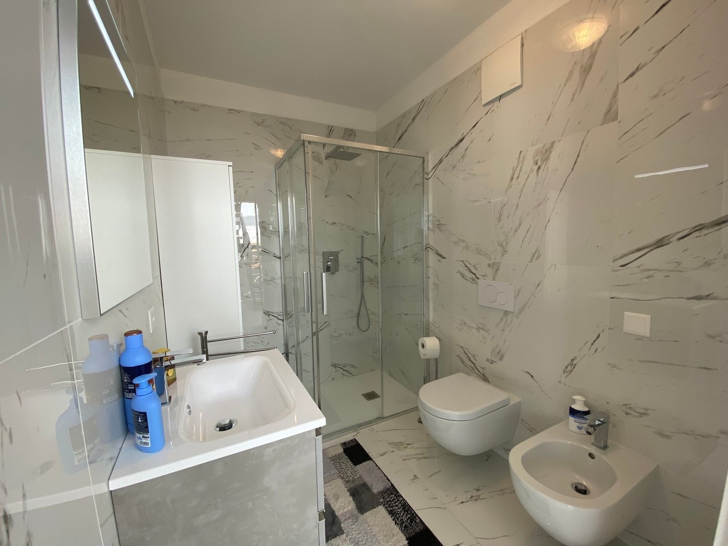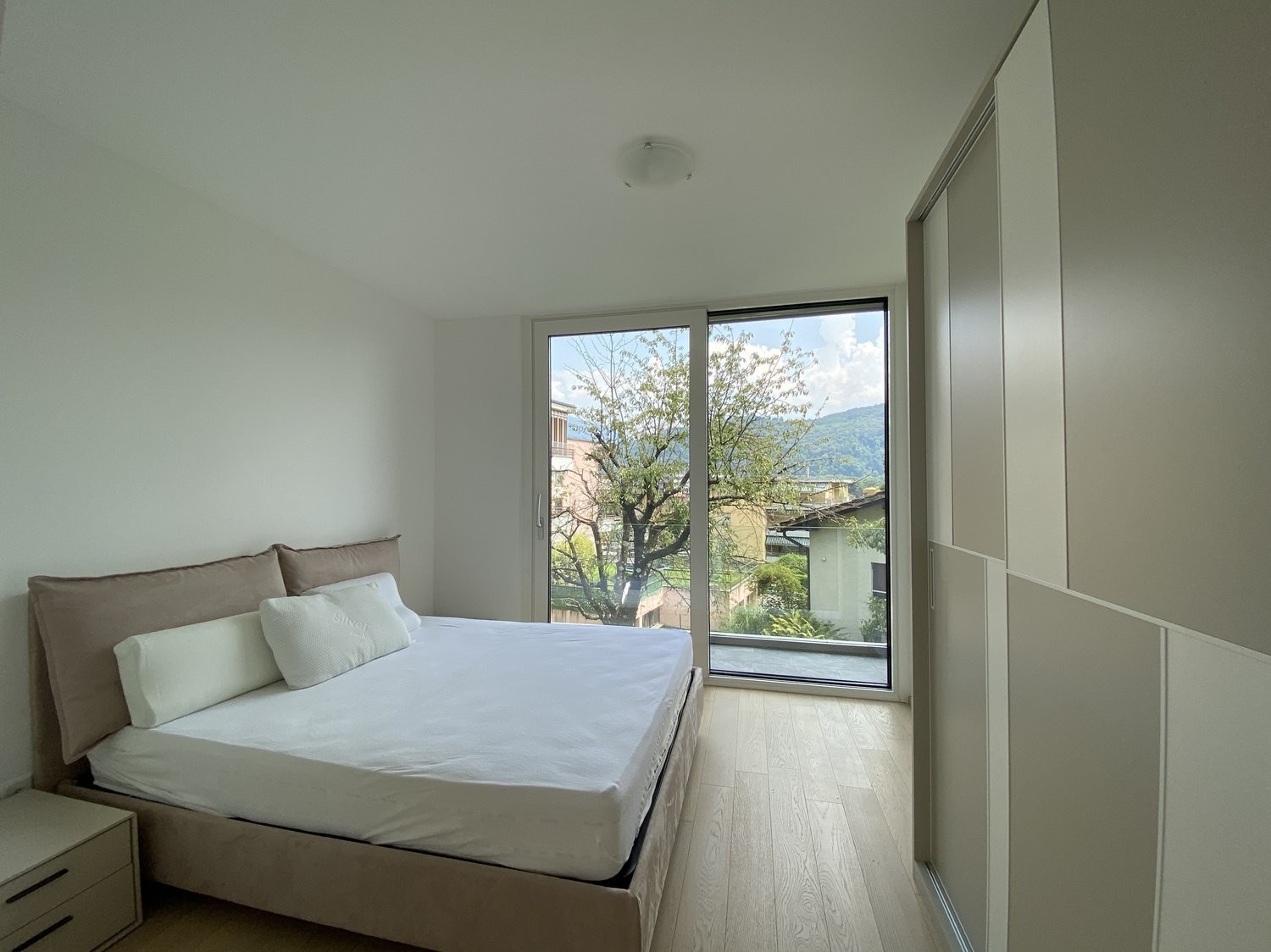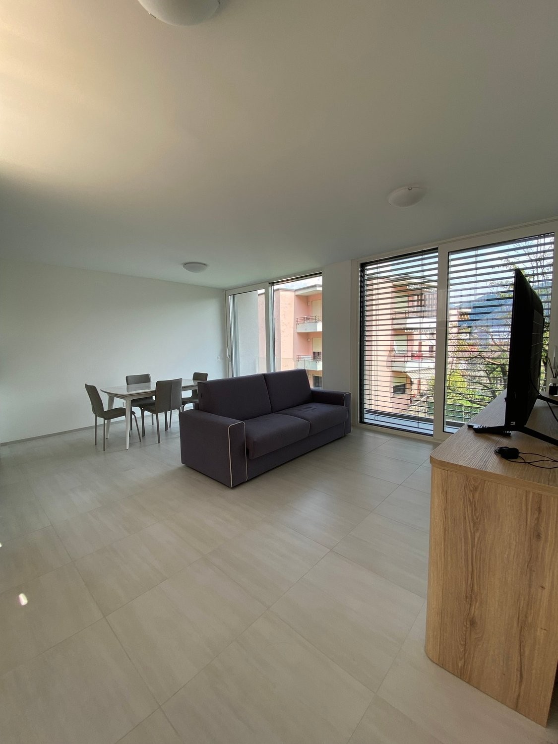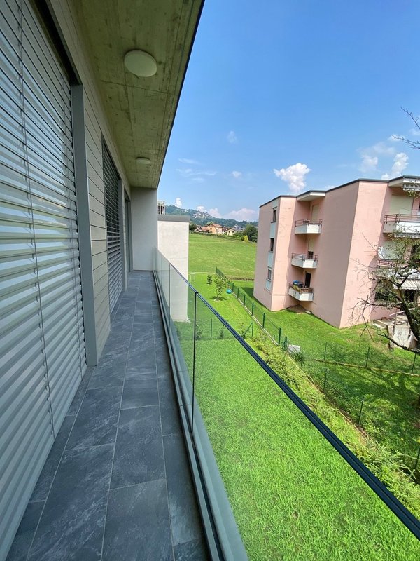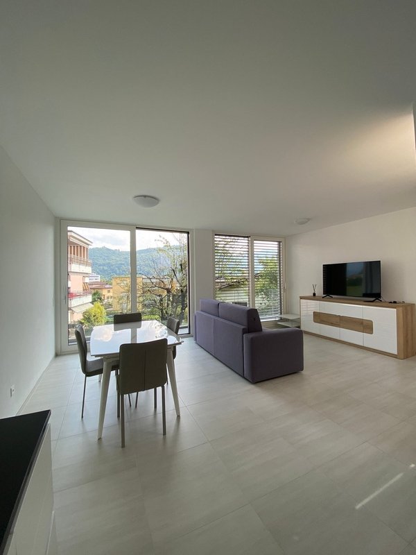 L'appartamento, situato ad Agno, è così composto: ingresso con armadio a muro che si apre sul luminoso soggiorno con cucina a vista e balcone, moderno bagno con doccia e camera matrimoniale anch'essa con accesso al balcone.