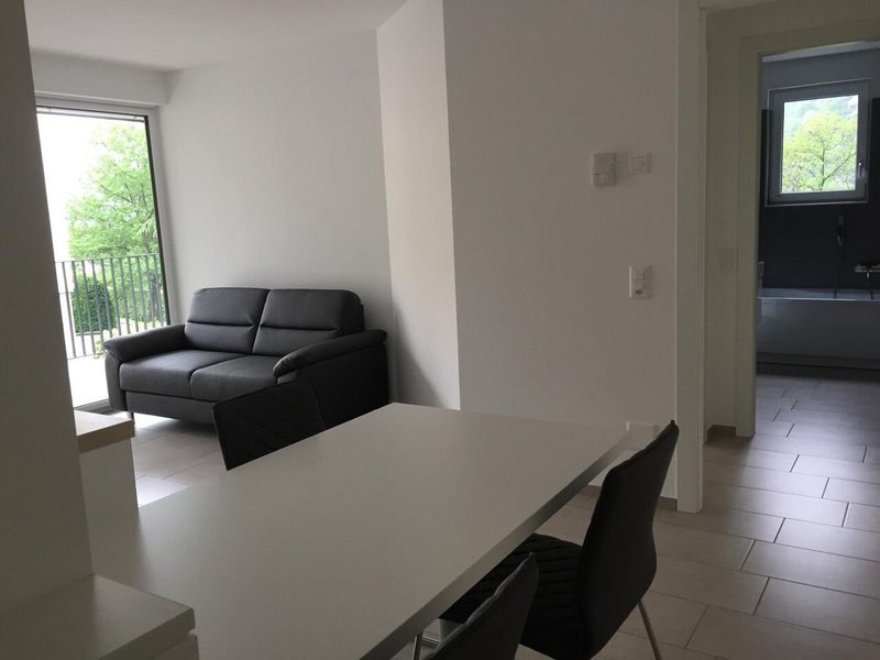 In posizione tranquilla e soleggiata, affitto a Biasca moderno appartamento di 2 1/2 locali al piano terreno di 51mq, con terrazza esterna di ca 17mq.