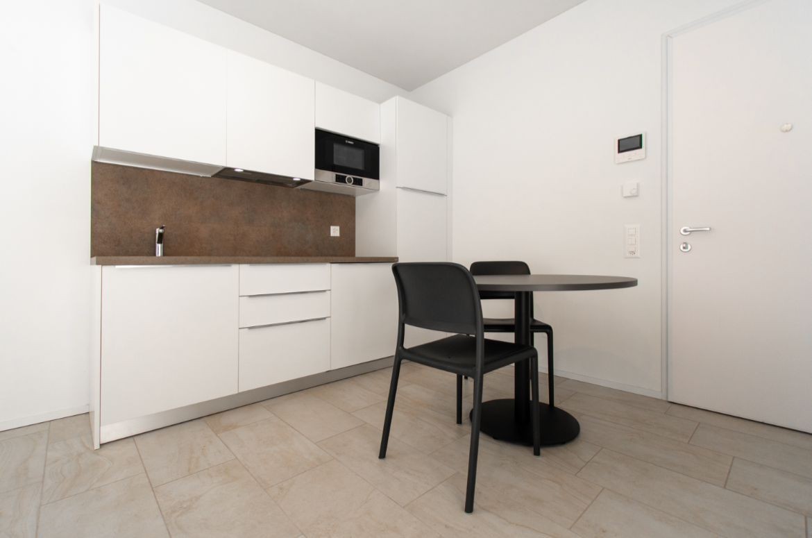 Luminoso e moderno monolocale di 28 m² con terrazzo di 4 m², situato al 5° piano con ascensore, in una palazzina di recente costruzione (2023) abitata prevalentemente da studenti.