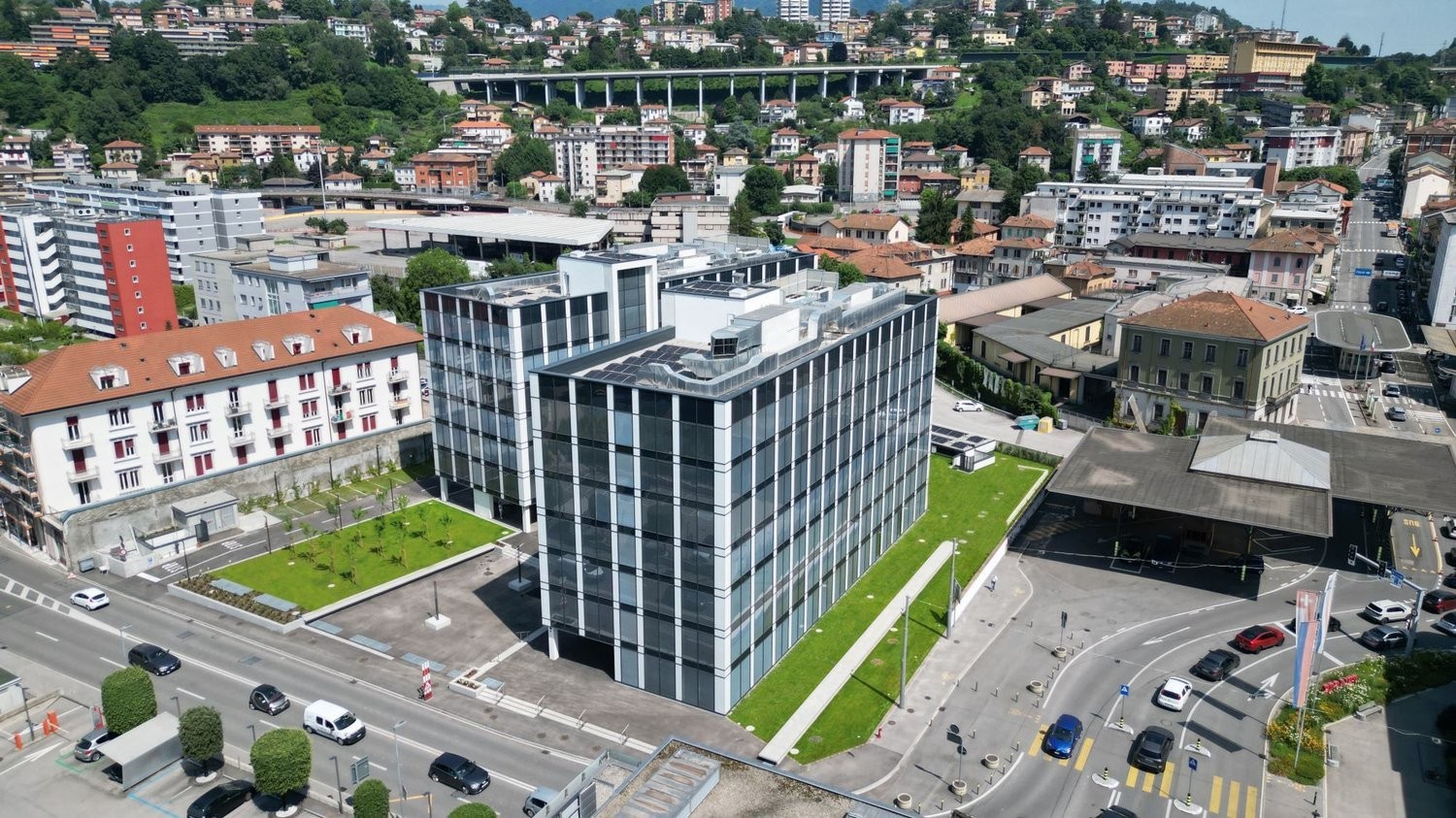The new administrative and business center is located in the heart of Chiasso , in a strategic location just a stone's throw from the industrial hub, the A2 and A9 highway entrance, the train station and the Italian border.