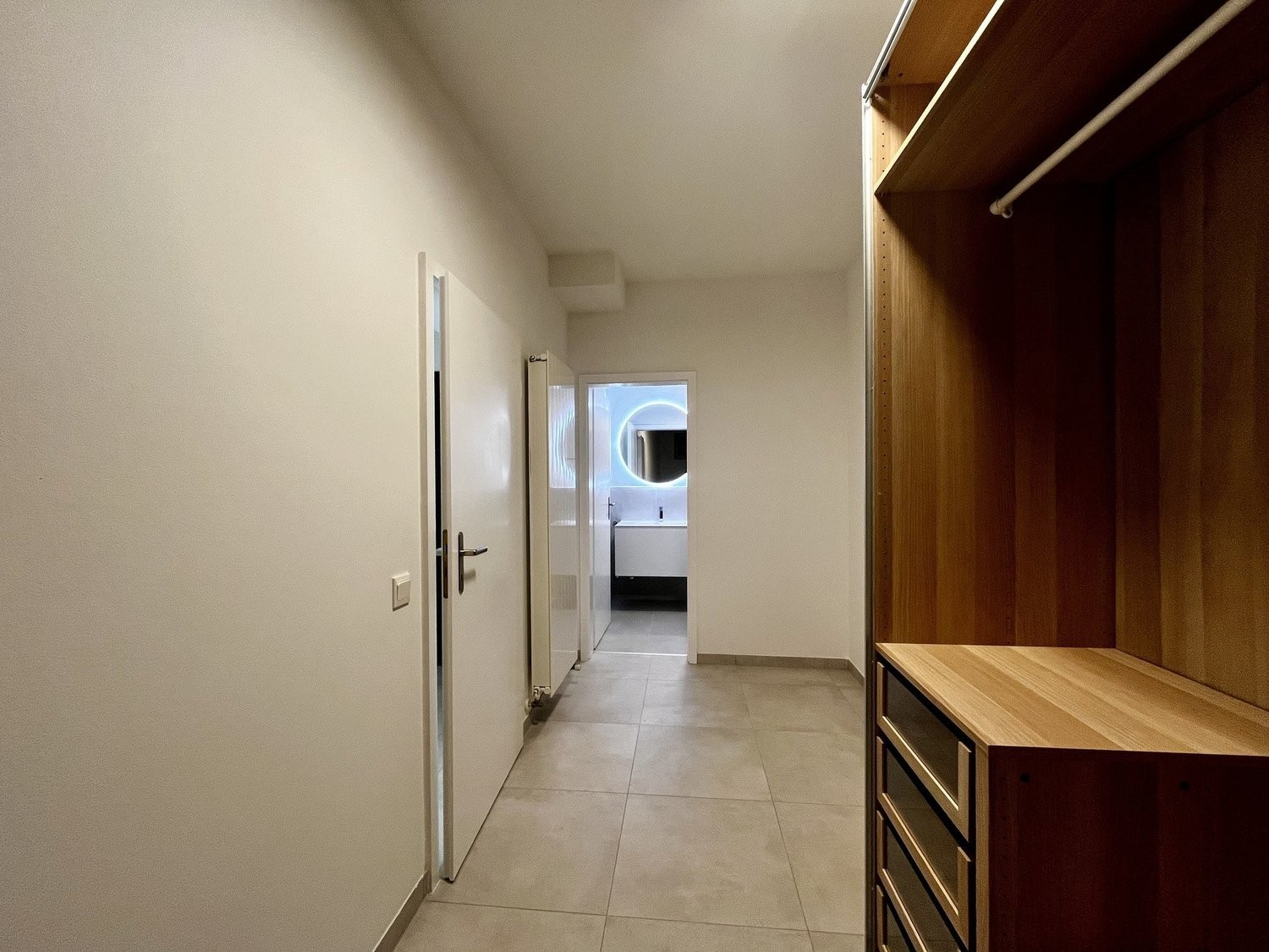 Gli interni, recentemente ristrutturati con gusto e attenzione ad ogni dettaglio, presentano armadi a muro progettati per ottimizzare lo spazio, garantendo un ambiente ordinato e ben organizzato.