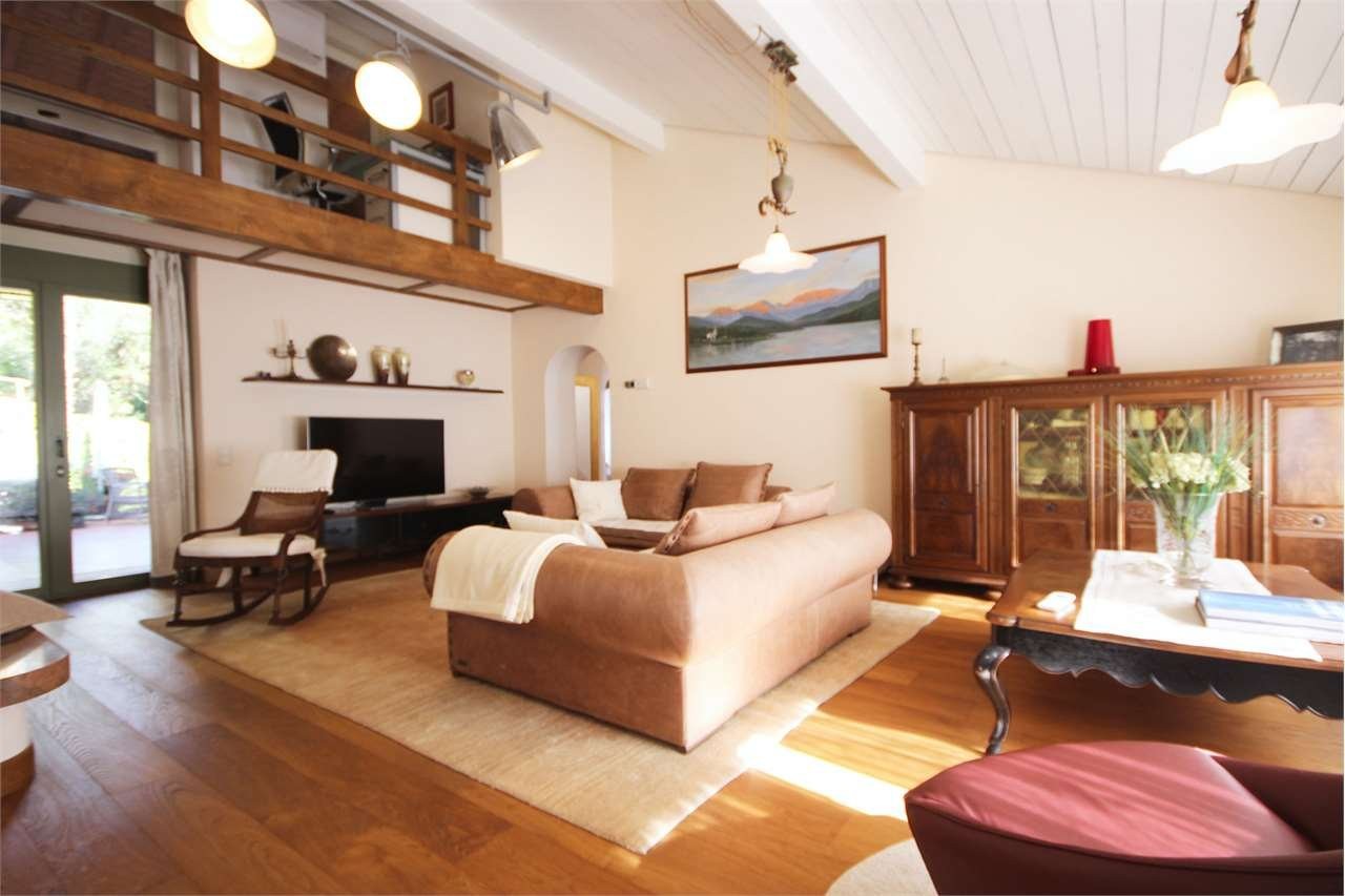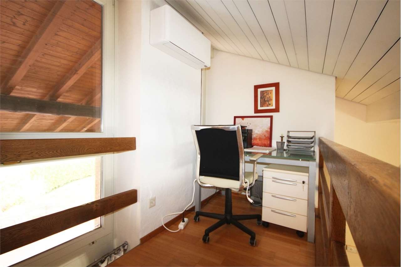 La casa si sviluppa principalmente su due livelli e dispone di salone con camino e accesso alla terrazza e giardino, pranzo, cucina abitabile, due camere da letto, studio, due bagni, terrazze, garage doppio, tre posti auto esterni.
