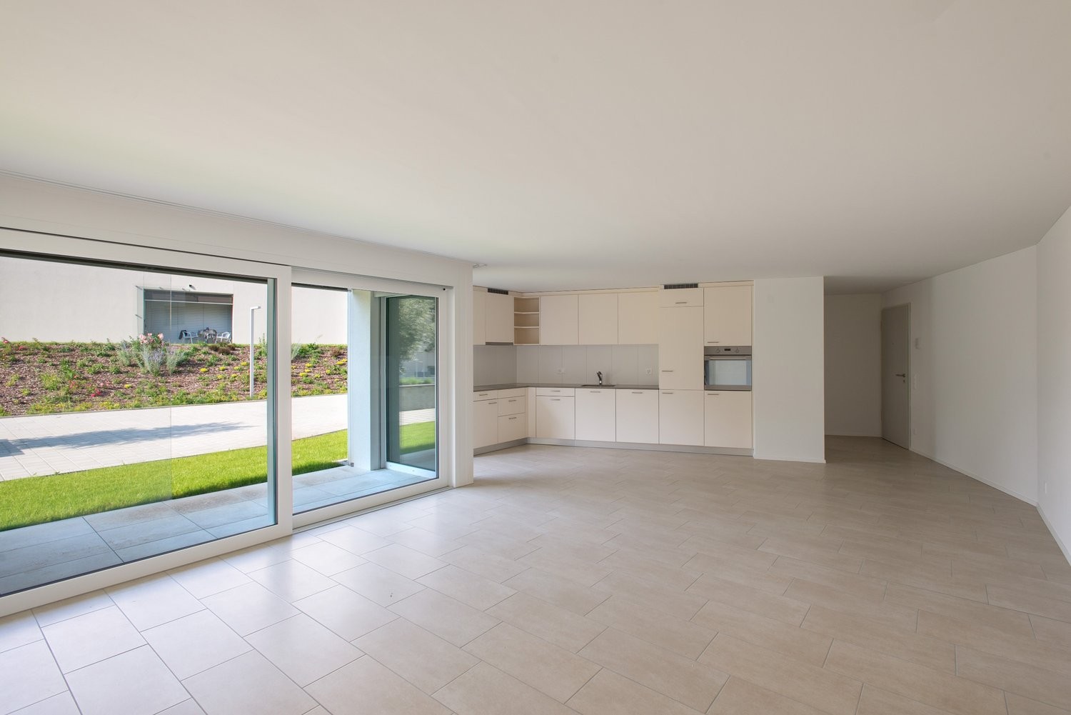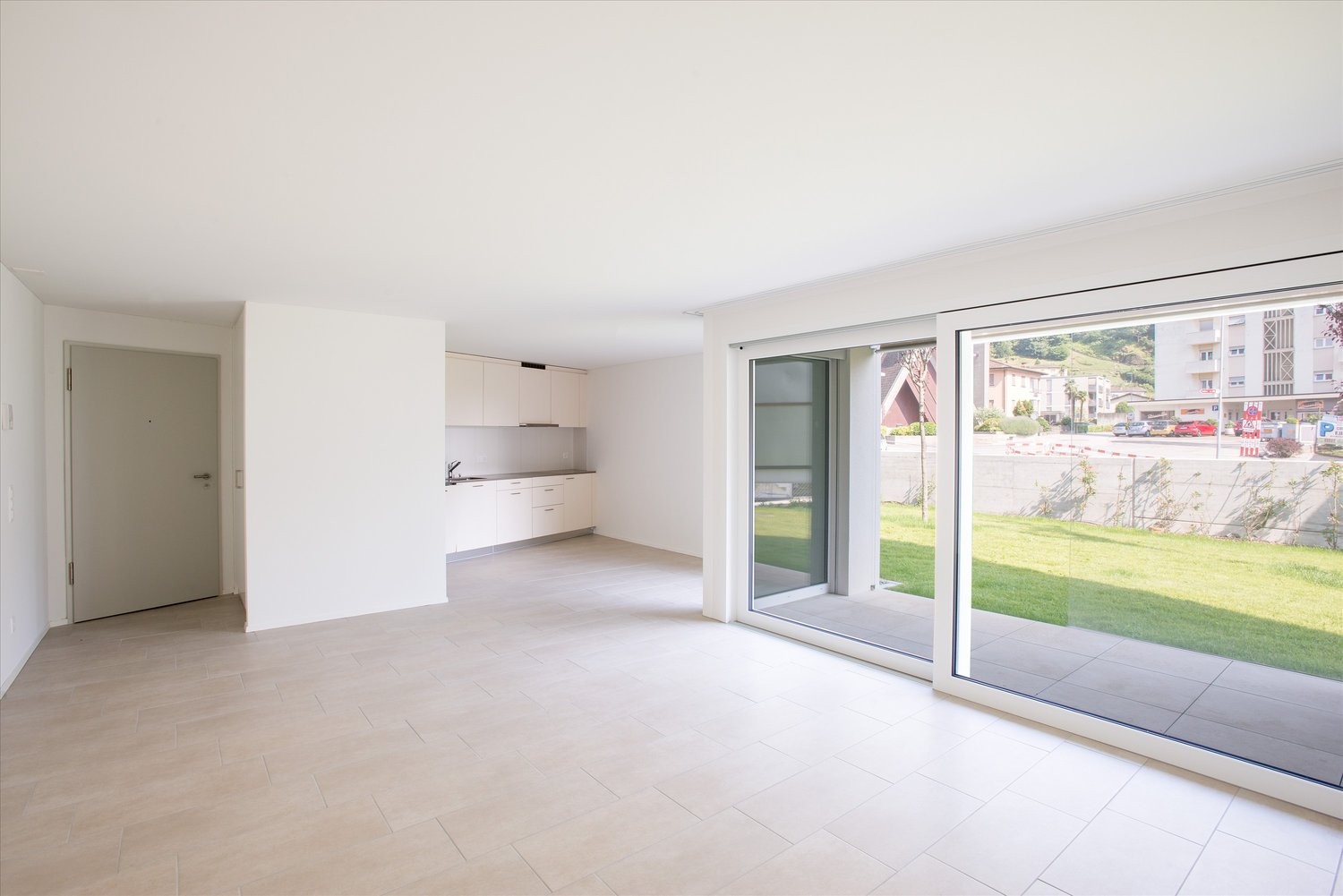 - Soggiorno e sala da pranzo con accesso alla terrazza (giardino comune non recintato)