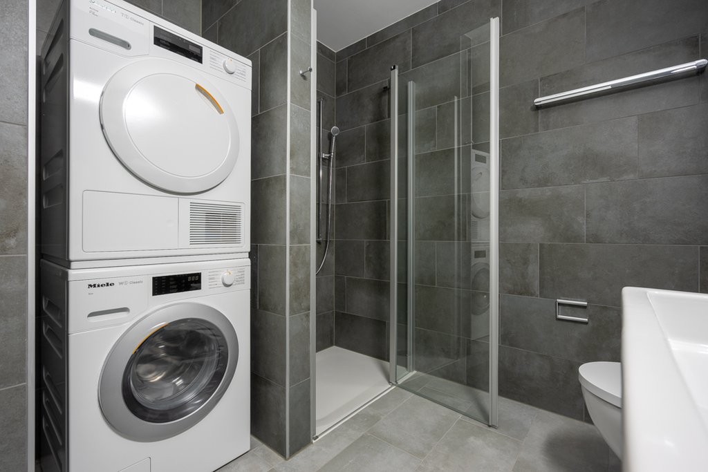- Bagno dotato di doccia e colonna lavasciuga
