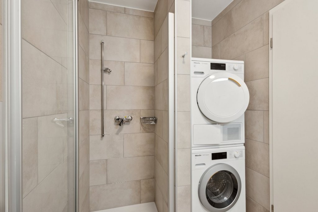 - Due bagni, uno dotato di doccia e colonna lavasciuga, l'altro dotato di vasca da bagno