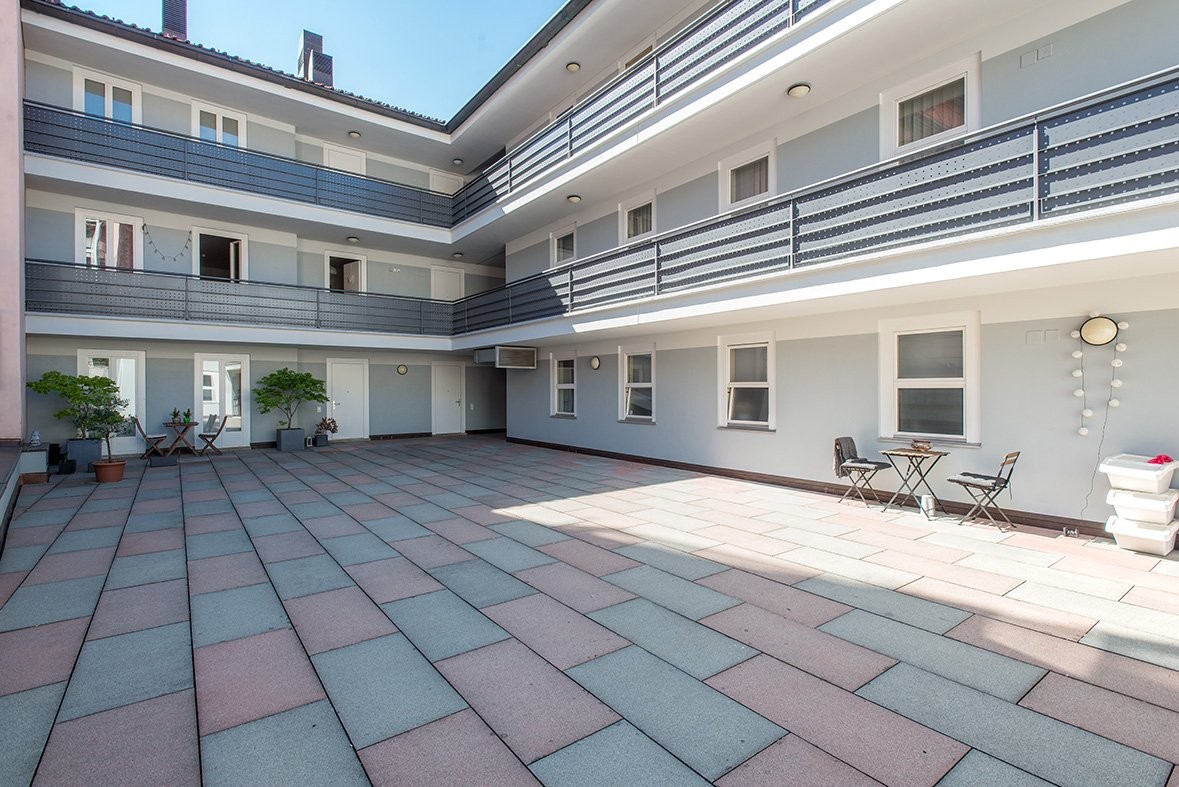 L'appartamento si trova in uno stabile storico che si affaccia sulla zona pedonale di Locarno, nelle vicinanze di tutti i principali servizi, negozi e della stazione ferroviaria.