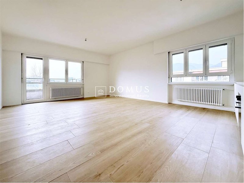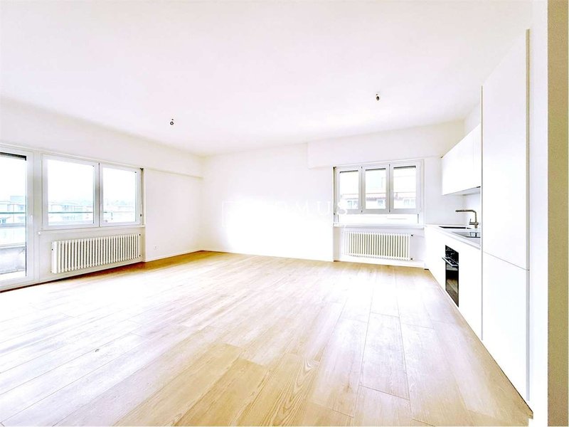 In stabile di otto piani con ascensore, 28 unità totali e gradevole giardino condominiale, proponiamo in affitto appartamento di 3.5 locali di ca. 90 mq (80 mq + balcone) in prima locazione dopo la completa ristrutturazione all'ultimo piano con ascensore.