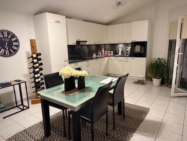 La zona pranzo è moderna e ben arredata. Lo spazio abitabile è ben distribuito e si presenta molto accattivante in quanto viene valorizzato sia dall'altezza dei soffitti che dalla tipologia del tetto eseguito in legno a vista. Appartamento dotato di termopompa. Il termostato è a regolazione individuale per ogni locale.