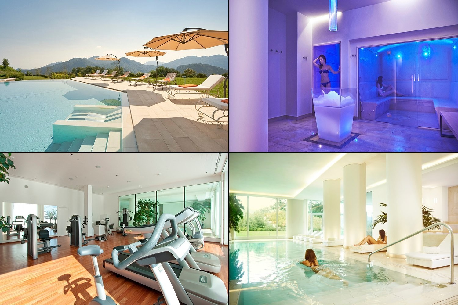 Completano l'offerta un meraviglioso solarium con piscina esterna e idromassaggio, Spa con piscina coperta e sala fitness attrezzata TechnoGym.