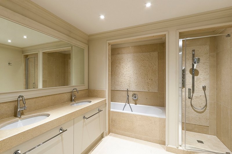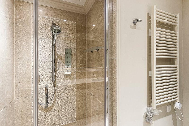 The apartment consists of the following: large living room with direct access to the 275 sqm private garden, fully furnished eat-in kitchen, master bedroom with large closet and private bathroom, second bedroom with bathroom and walk-in closet.
