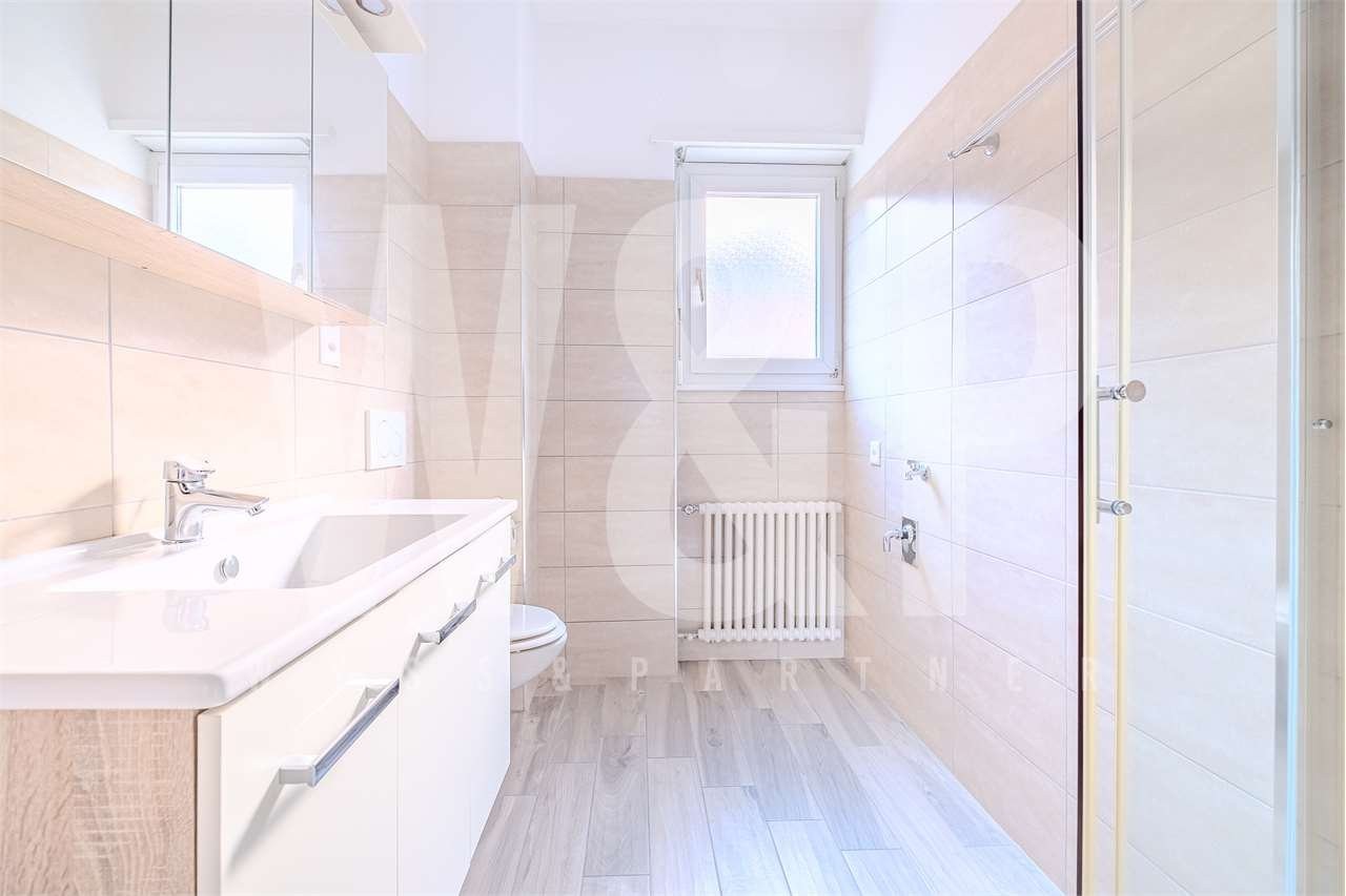 Limmobile è composto da un atrio dingresso con pratico armadio a muro, cucina separata, bagno con vasca, due camere da letto e un luminoso soggiorno con balcone. È inoltre possibile installare una colonna lava-asciuga privata.