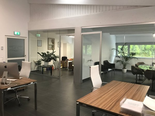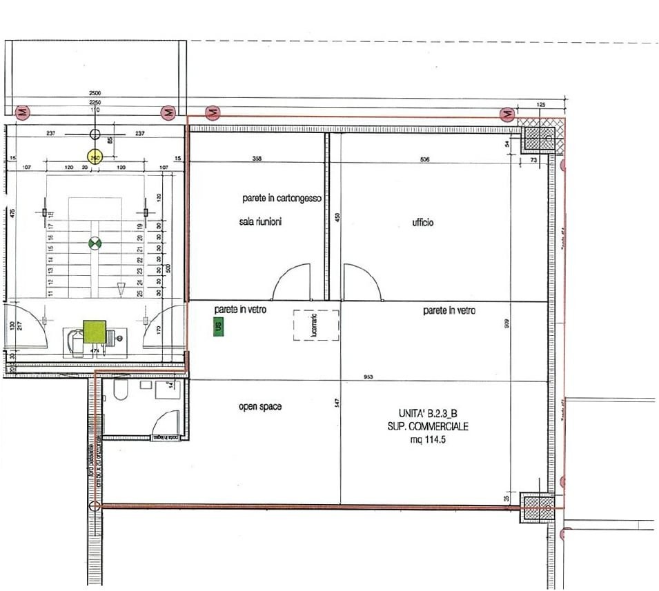 L'ufficio di 115 mq comprende un'ampia area open space e due sale private con pareti in vetro. Lo spazio è molto luminoso e dispone di sistemi di riscaldamento e raffreddamento, oltre a una connessione in fibra ottica. Sono presenti servizi igienici privati.