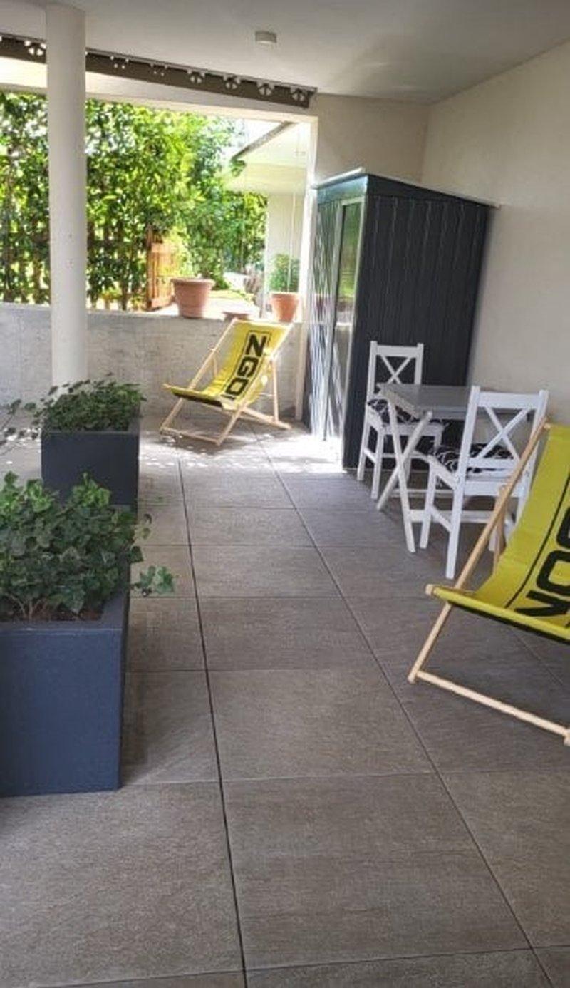 A soli 300 metri dal Lago Maggiore, in una zona soleggiata e ben sviluppata, offriamo in affitto un nuovo appartamento di 2.5 locali al piano terra con zona salotto coperta.