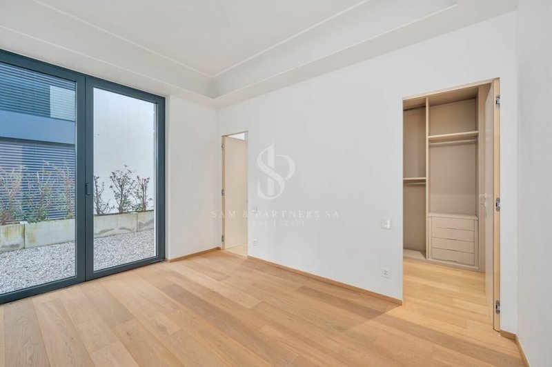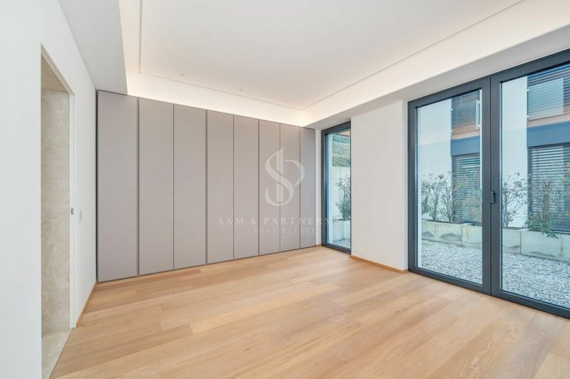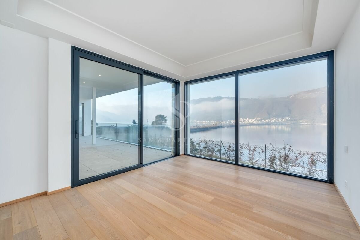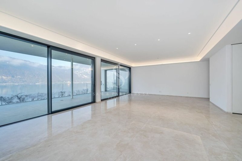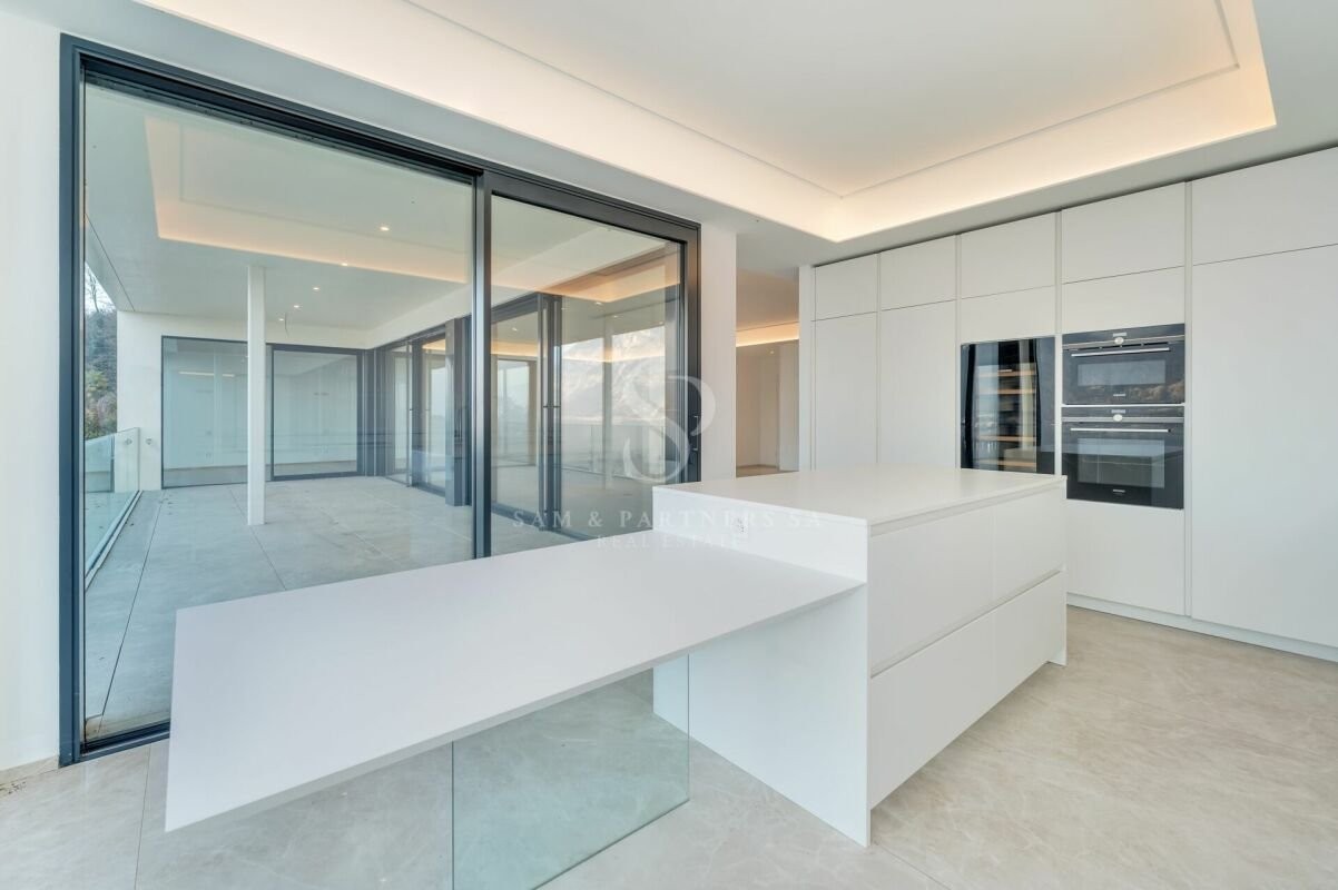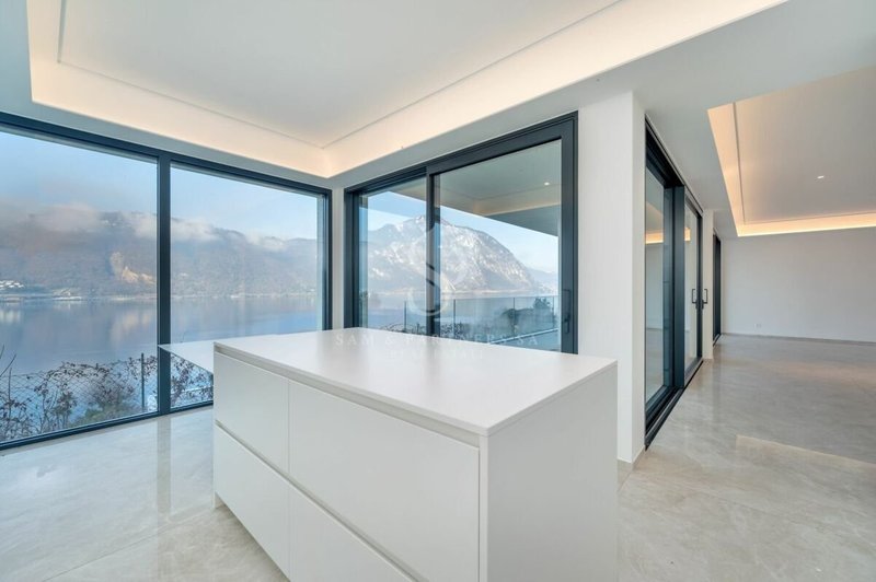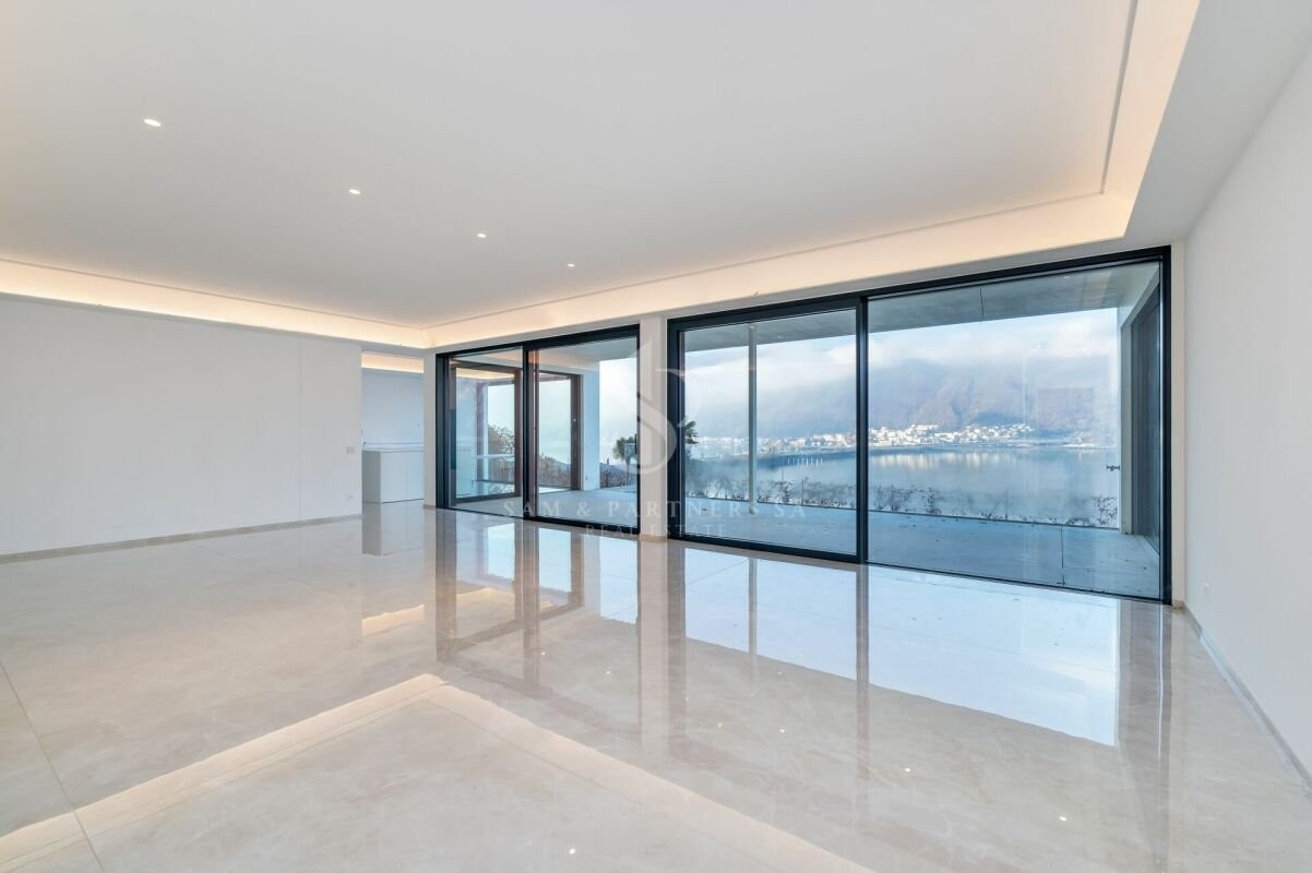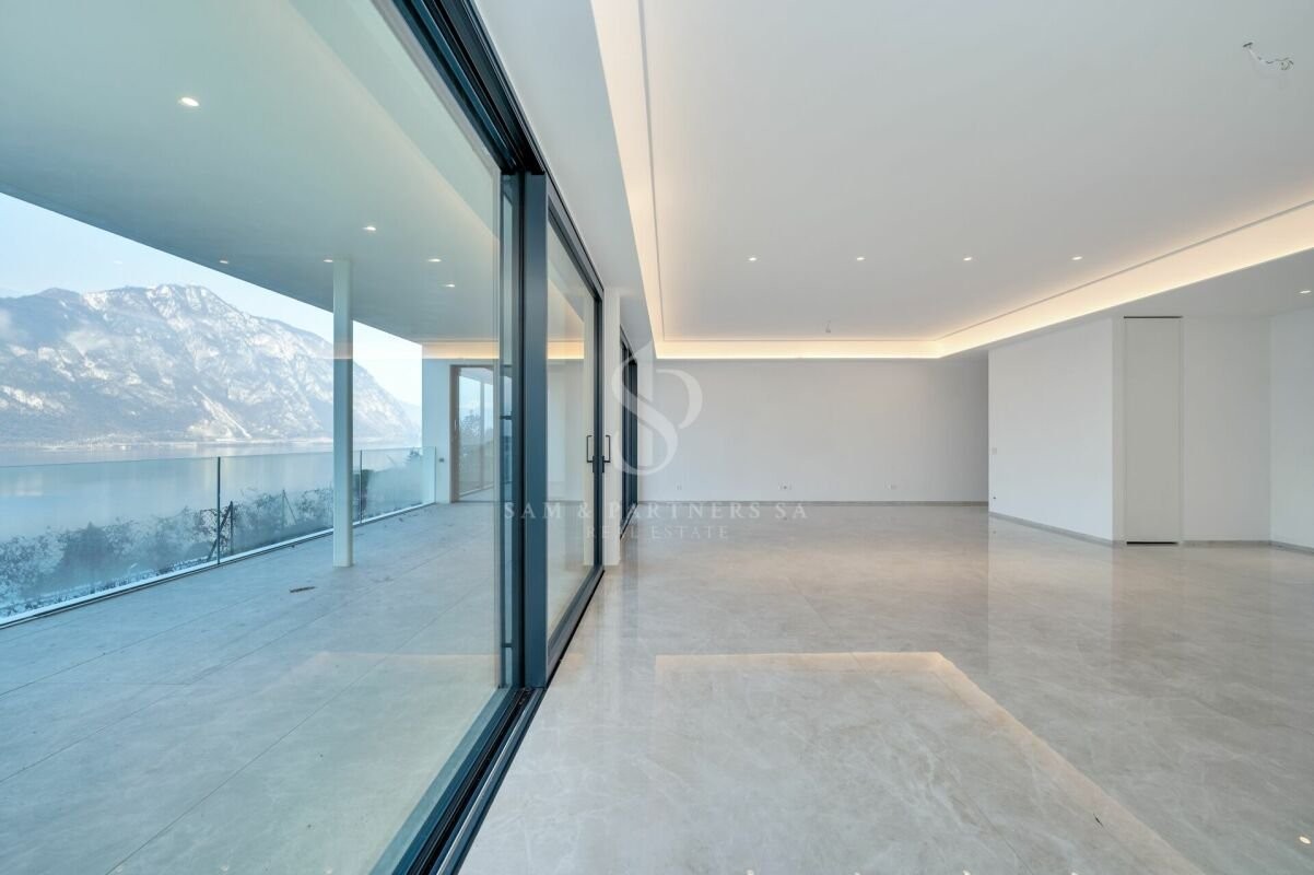 Prestigioso appartamento con giardino in vendita a Bissone, situato al piano terra di una moderna ed elegante costruzione del 2023, con vista panoramica mozzafiato.