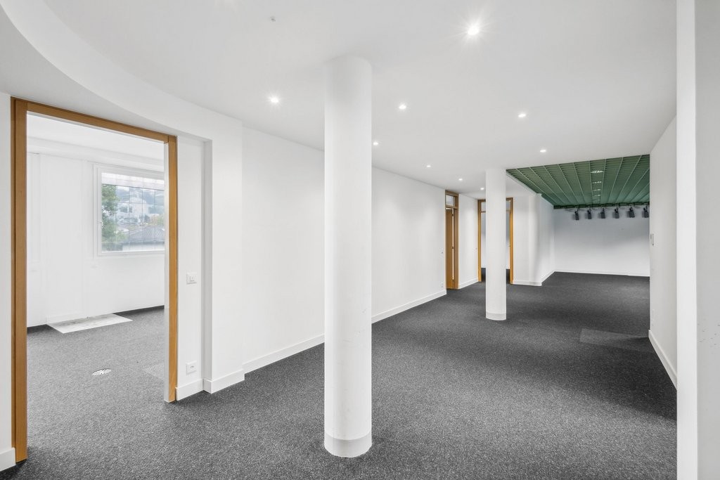 I moderni locali con una SUL di 199m2, si trovano al 2. piano ed offrono un impianto di aria condizionata, pavimento tecnico, servizi uomo/donna, locale guardaroba e posteggi interni.