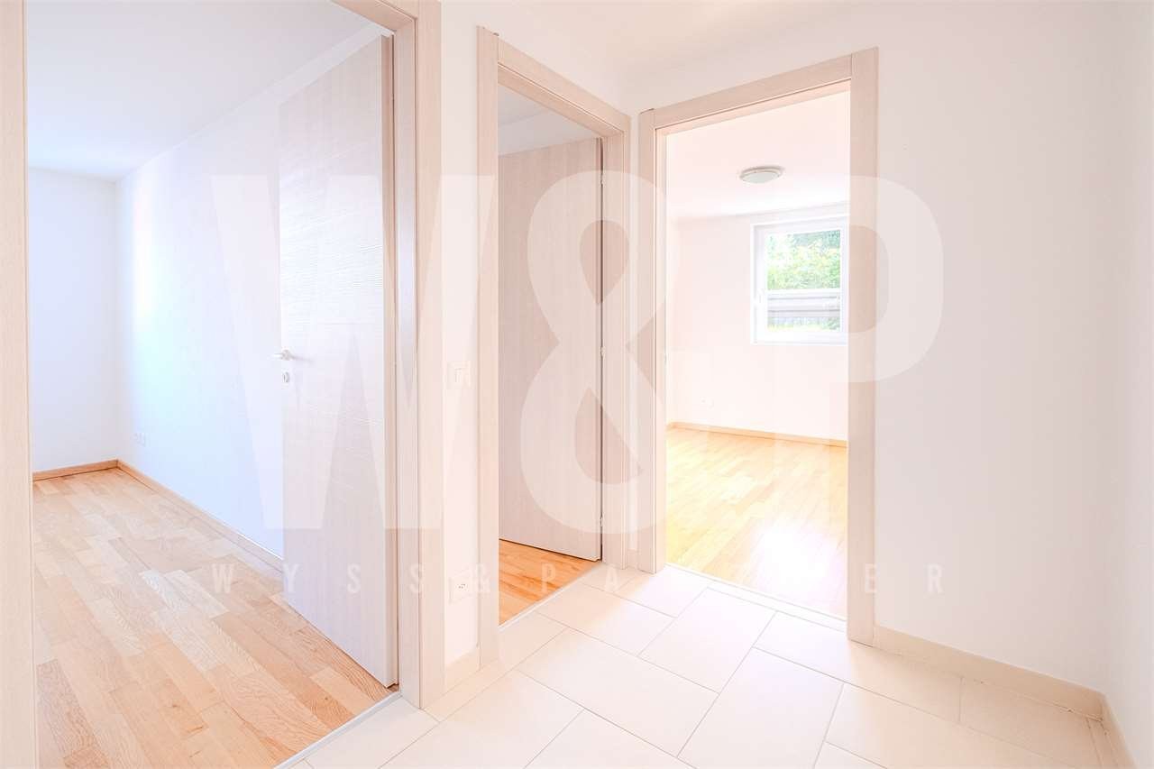 Atrio dingresso, ampio soggiorno con grandi finestre, cucina moderna aperta sul soggiorno, tre spaziose camere da letto, un bagno principale con vasca e finestra e un bagno ospiti con doccia. L'offerta include inoltre una cantina privata.