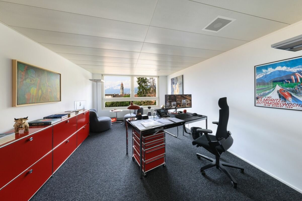 Da affittare grande ufficio distribuito su tutto l'ultimo piano dello stabile con vista meravigliosa sopra il nucleo di Ascona e il Lago Maggiore. Accesso diretto tramite ascensore e/o scale. Il locale è ben suddiviso e molteplici uffici separati e un grande open space. Riscaldamento a radiatori, climatizzazione e ventilazione controllata. Doppio servizio e locale deposito. Possibilità di affittare posteggi scoperti.