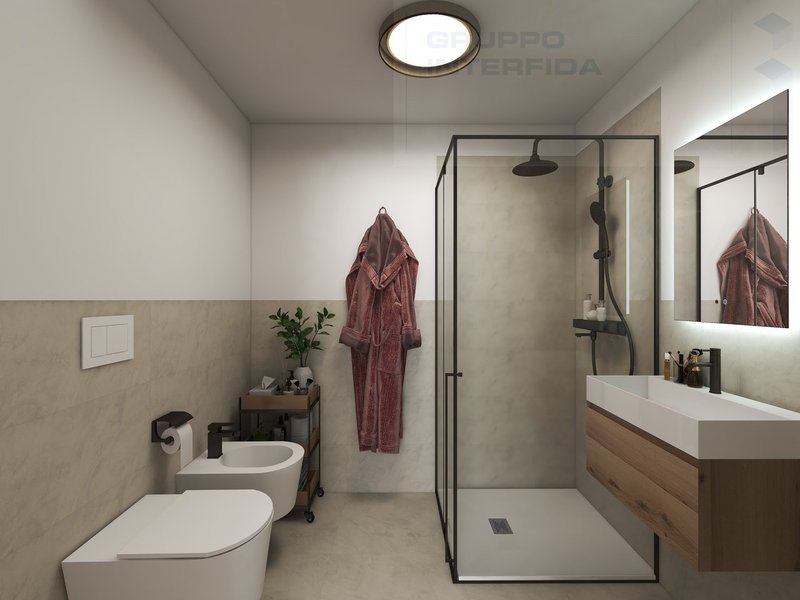 Gli appartamenti, oggetto di una ristrutturazione completa, si presentano con ambienti luminosi e finiture moderne. La distribuzione degli spazi è la seguente: