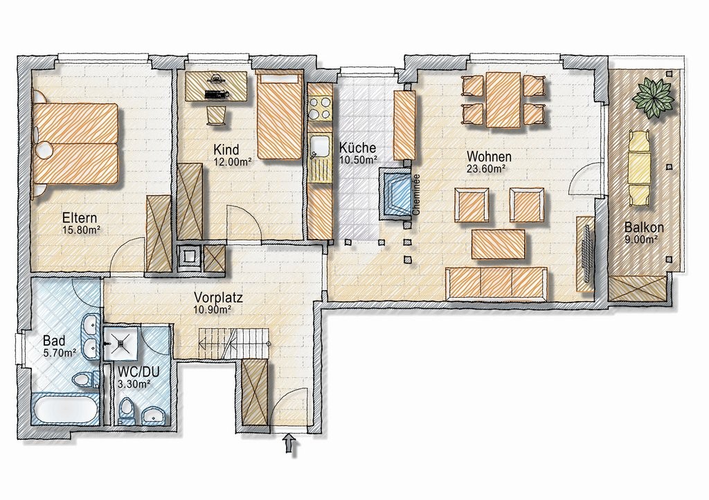 Grosszügig geschnittene Maisonettewohnung im Dachgeschoss