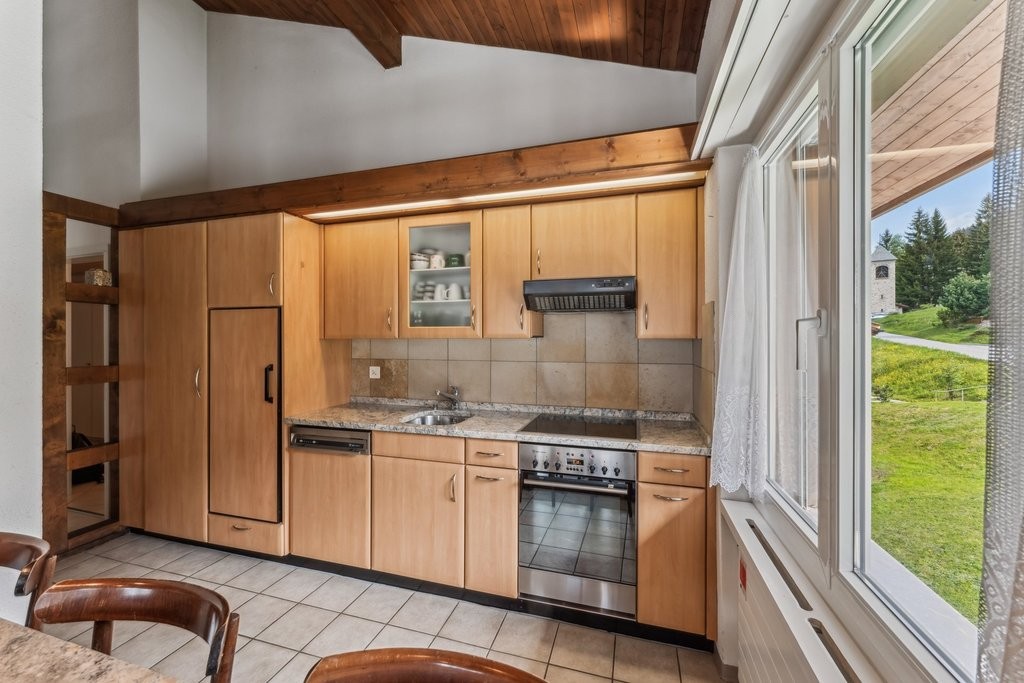 Mitten im Dorf und doch wunderbar ruhig gelegen: Diese charmante 4.5-Zimmer-Maisonette-Ferienwohnung bietet alles, was man sich für eine entspannte Auszeit in den Bergen wünscht. Sie erwartet ein gemütliches Zuhause mit überhohen Decken, viel Licht, einem überdachten Balkon mit Bergblick - und das alles nur wenige Gehminuten von Skipiste, See und Dorfzentrum entfernt. Freuen Sie sich auf folgende Highlights: