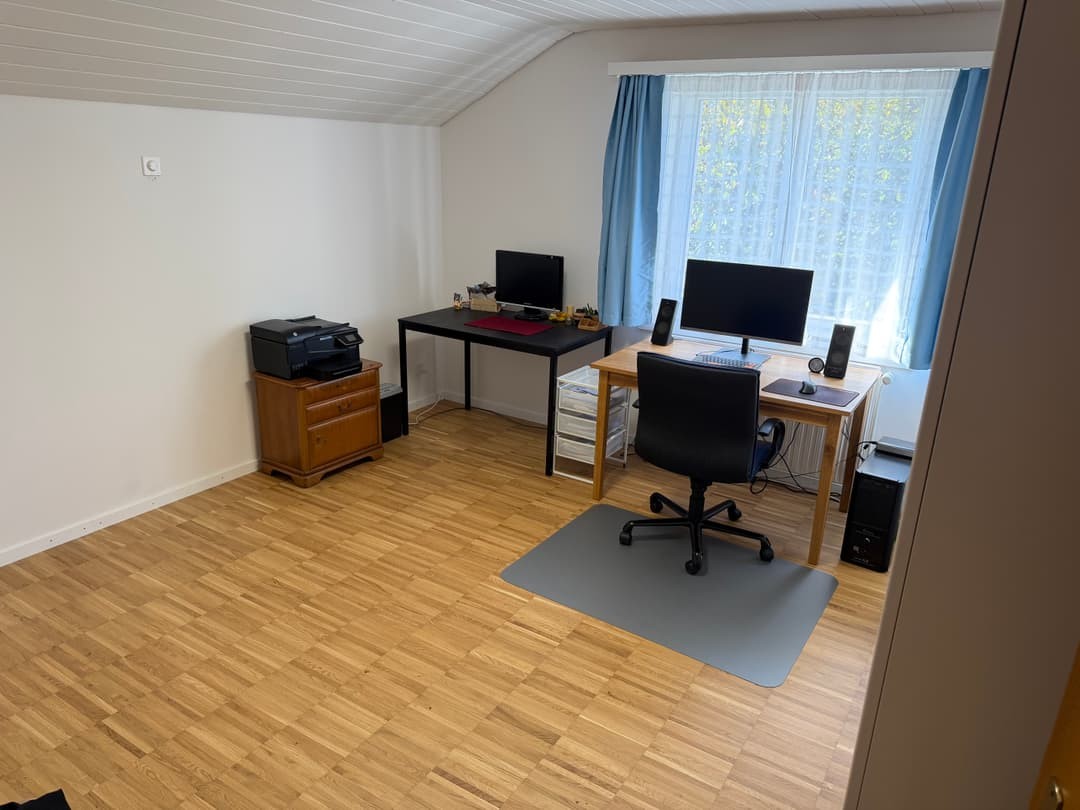 Drei Zimmer: Zimmer 1 (14.3 m2), Zimmer 2 (Büro, 14.3 m2) und Zimmer 3 (Kinderzimmer, 10.0 m2).