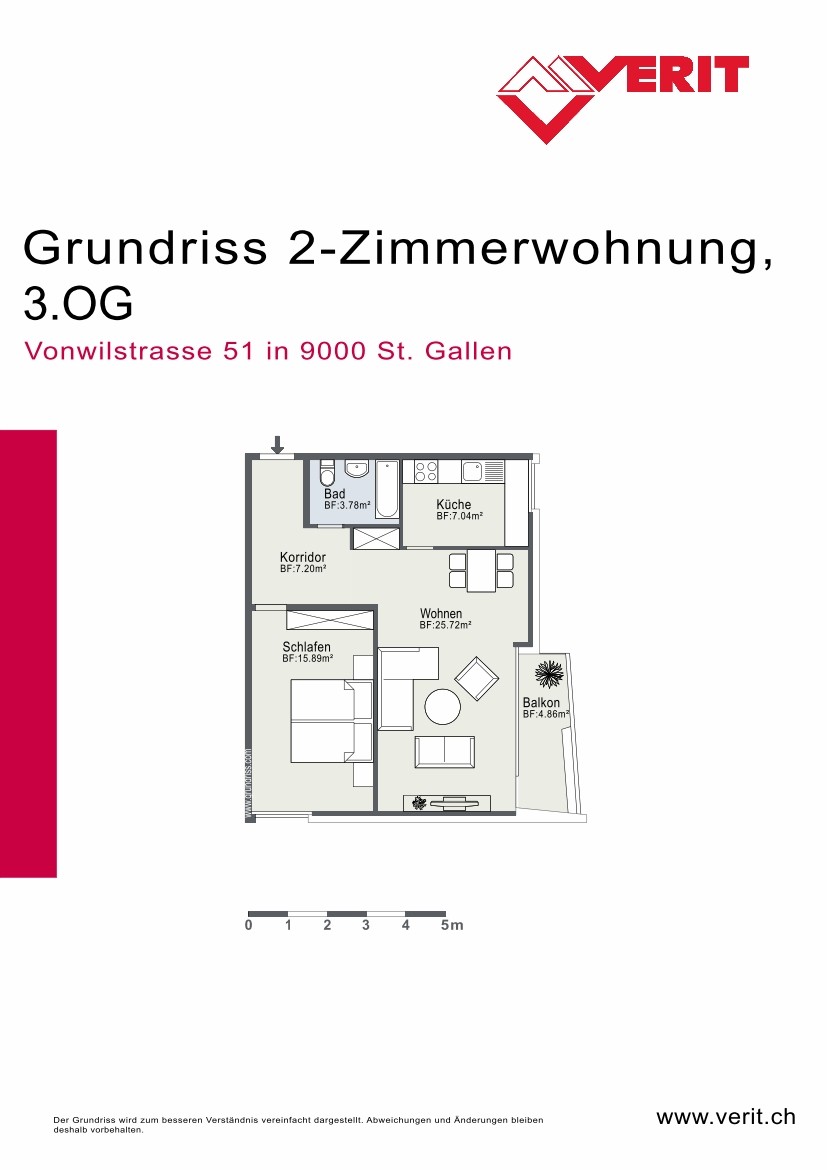 Per sofort oder nach Vereinbarung vermieten wir diese 2-Zimmerwohnung im 3. Obergeschoss an ruhiger Strassenlage.