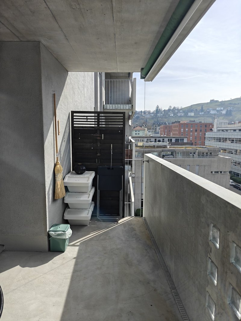 Ein besonderes Highlight ist der grosse, sonnige Balkon mit schöner Aussicht über St. Gallen. Dank grosser Fenster sind die Räume sehr hell und freundlich.