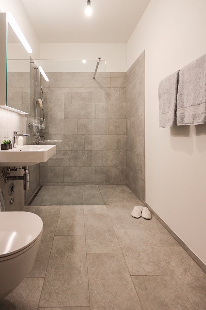 - Bad mit Badewanne, Dusche und Waschmaschine/Tumbler