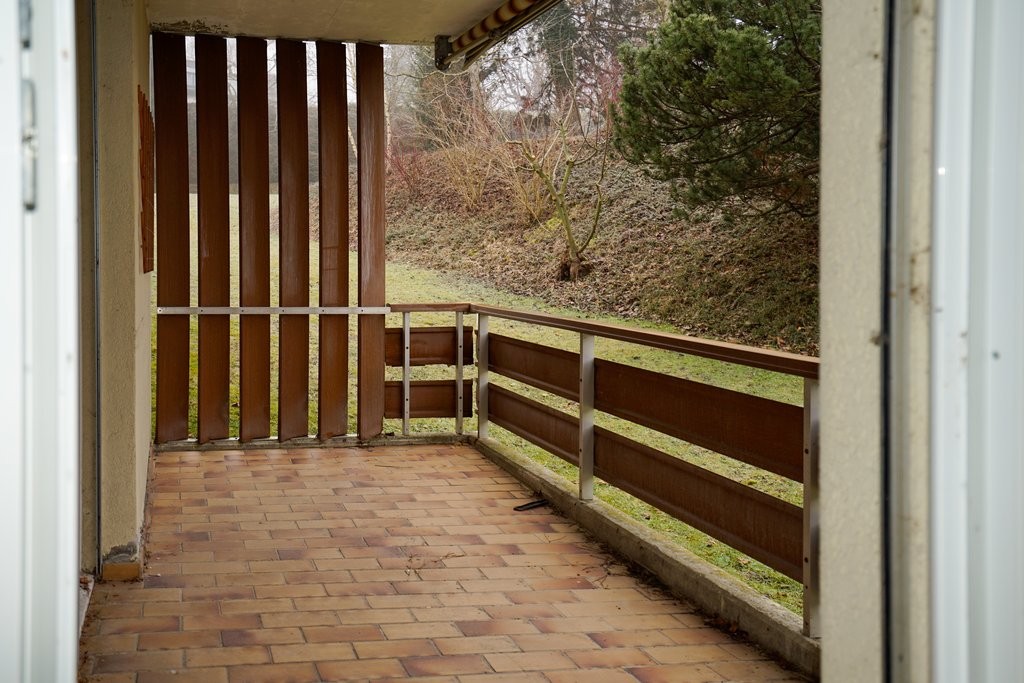L'appartement est situé au 2e étage (sans ascenseur) d'un immeuble collectif et dispose d'un balcon avec vue sur la verdure.