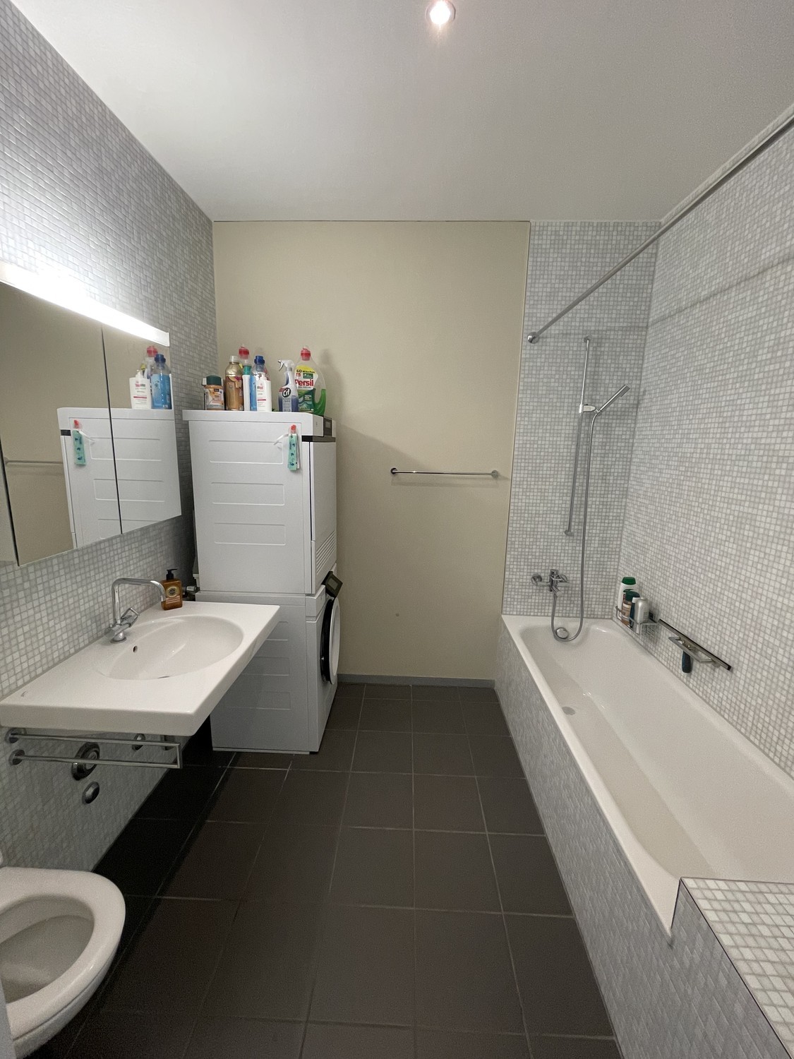 Bathroom with bath tub and washing machine + dry tumbler VZUG