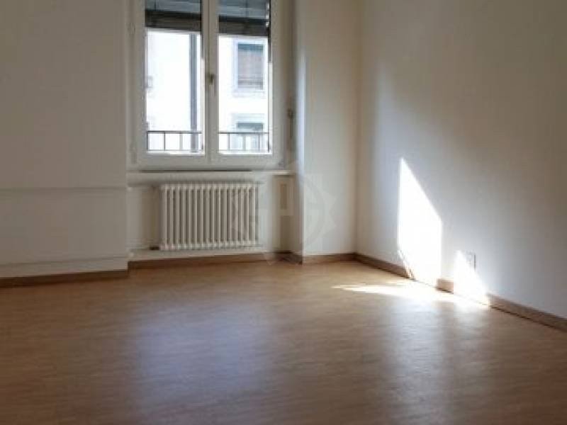 Appartement comprenant un petit hall d'entrée, un grand séjour ouvert sur la cuisine (agencée et partiellement équipée), une grande chambre à coucher et une salle de bains. Pas de balcon.