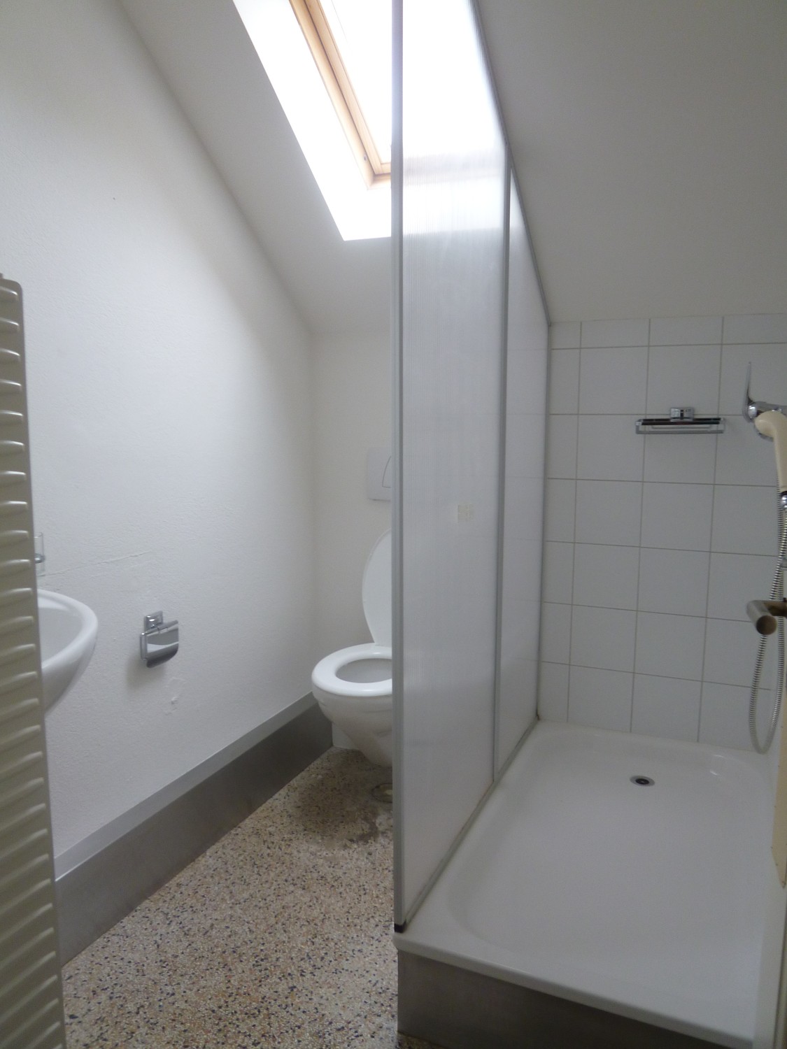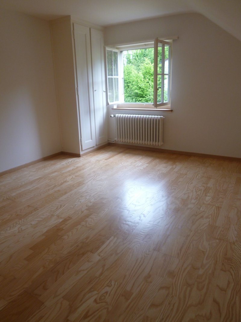 Zu vermieten ist eine 2-Zimmer-Dachwohnung im 3. Stock eines Mehrfamilienhauses im Steinhölzli-Quartier. Die Wohnung befindet sich in ruhiger Lage mit Ausblick auf umliegende Gärten und ohne direkte Strassenausrichtung, wodurch kaum Strassenlärm wahrnehmbar ist.