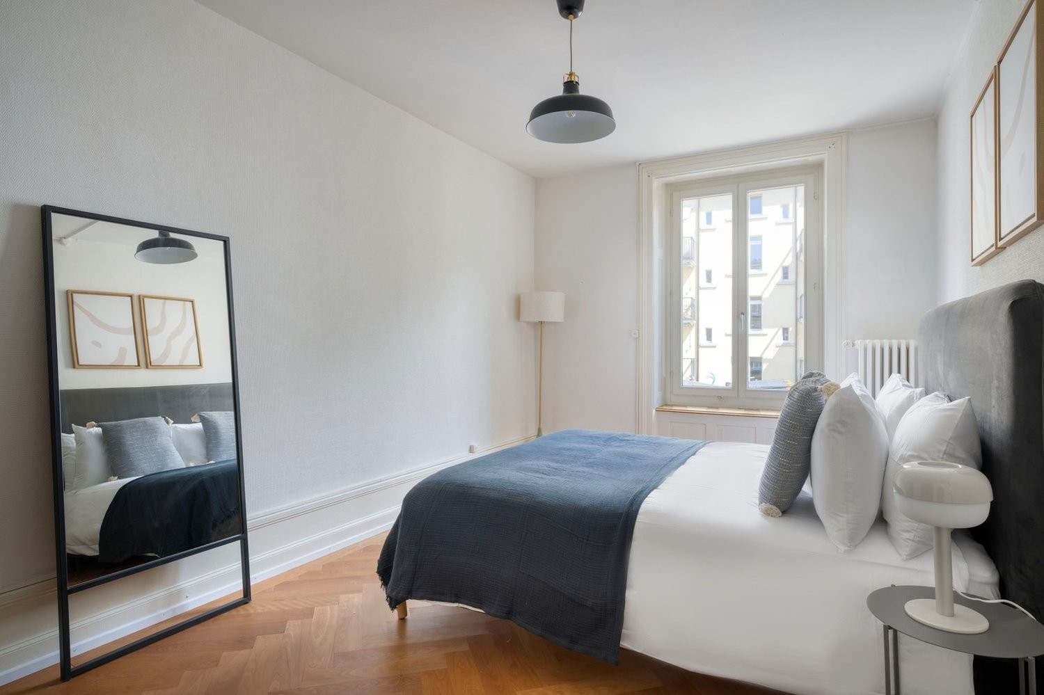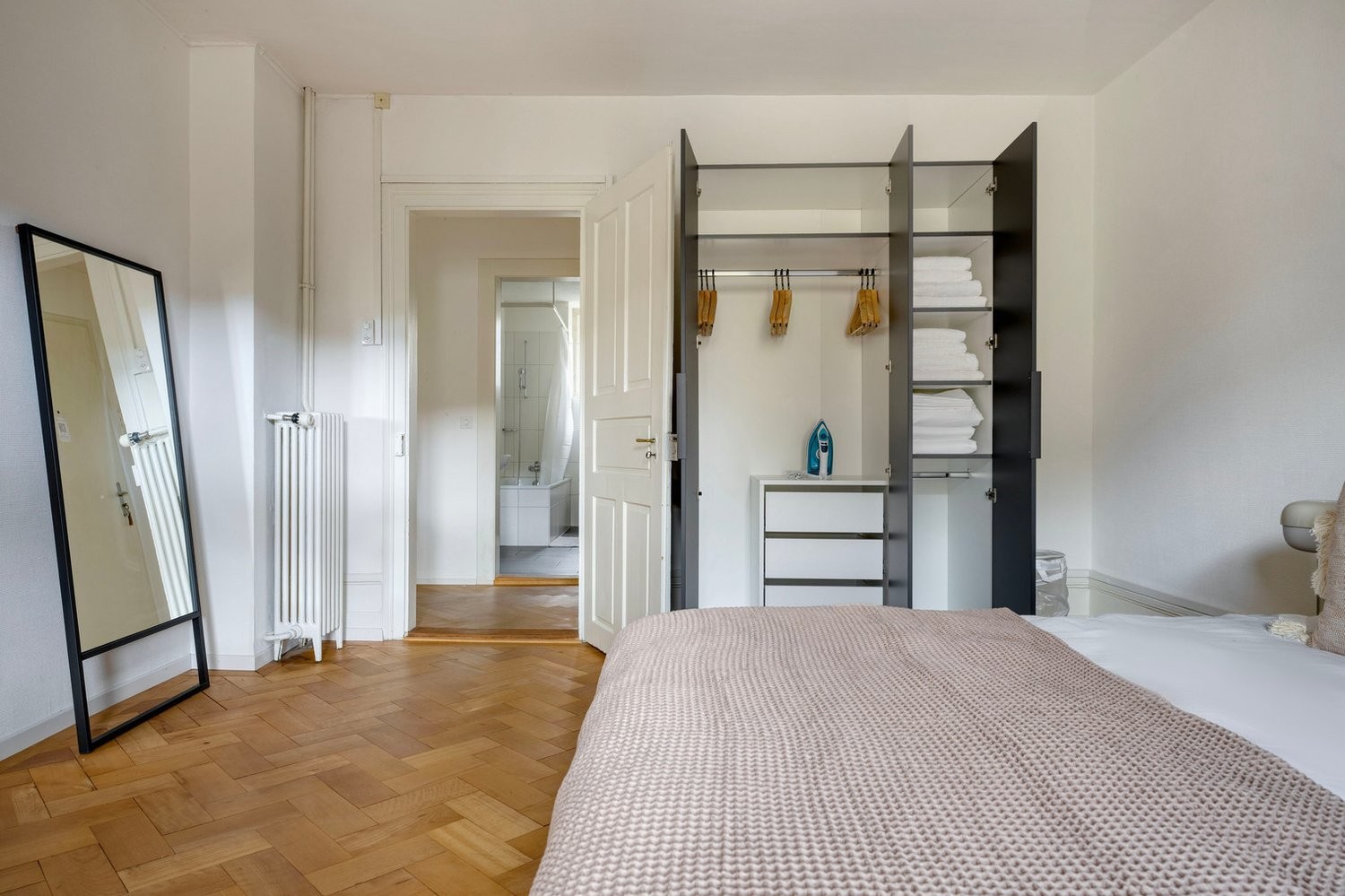 Fühlen Sie sich mit Blueground überall dort zu Hause, wo Sie leben möchten. Sie werden dieses hell Enge möblierte Zwei-Schlafzimmer Wohnung mit seiner modernen Einrichtung lieben, voll ausgestattete Küche, und fröhlich Wohnzimmer. Dank der idealen Lage sind Sie ganz in der Nähe von allem, was Zurich zu bieten hat! (ID #ZRH151)