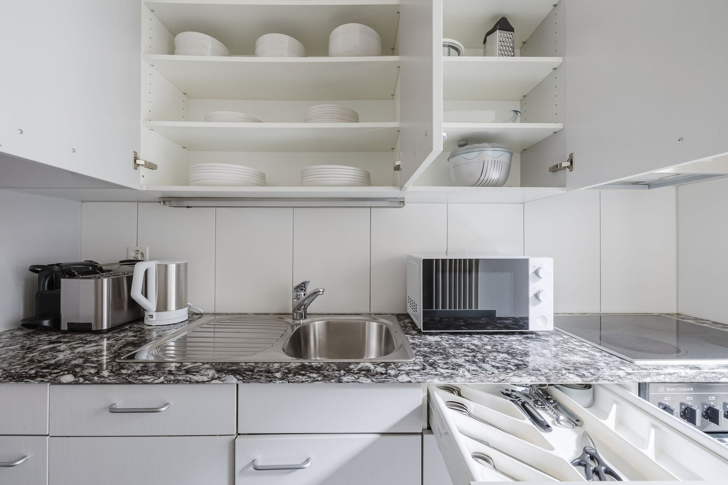 Wie bei jedem Blueground Wohnung finden Sie einen durchdacht gestalteten Raum mit schönen Möbeln. und eine voll ausgestattete Küche in diesem Zwei-Schlafzimmern Immobilie. Und dank unserer hochwertigen Matratzen können Sie sich entspannen, weil Sie sich immer wie zu Hause fühlen werden. Wenn Sie Lust auf etwas Spaß haben, können Sie die Zurich -Atmosphäre genießen oder sich die Unterhaltung mit dem kabellosen Premium-Lautsprecher oder dem Smart-TV direkt nach Hause holen.