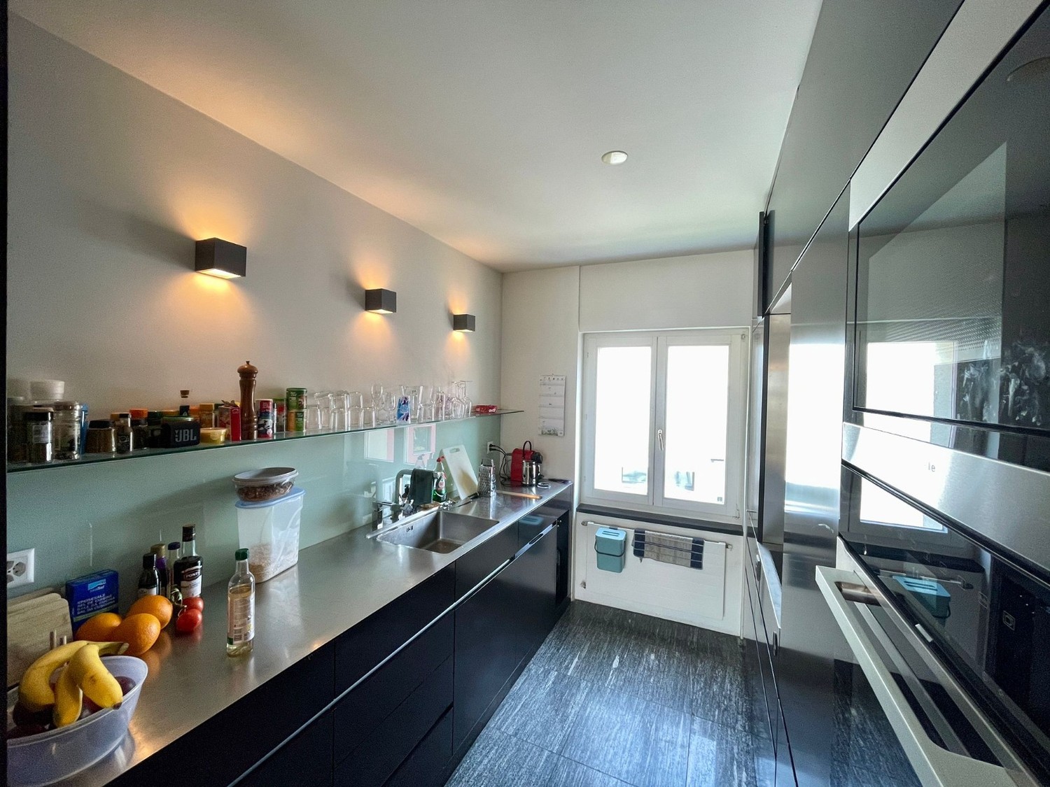 Die Wohnung verfügt über 6,5 Zimmer mit 3 Schlafzimmern, ein grosszügiges südseitiges Wohnzimmer mit grossen Glasschiebetüren und Balkon mit Aussicht über die Stadt, ein Büroabteil, zwei Bäder (eins nur von dir benutzt), eine Küche und eine grosse private Dachterasse mit Blick über die Stadt.