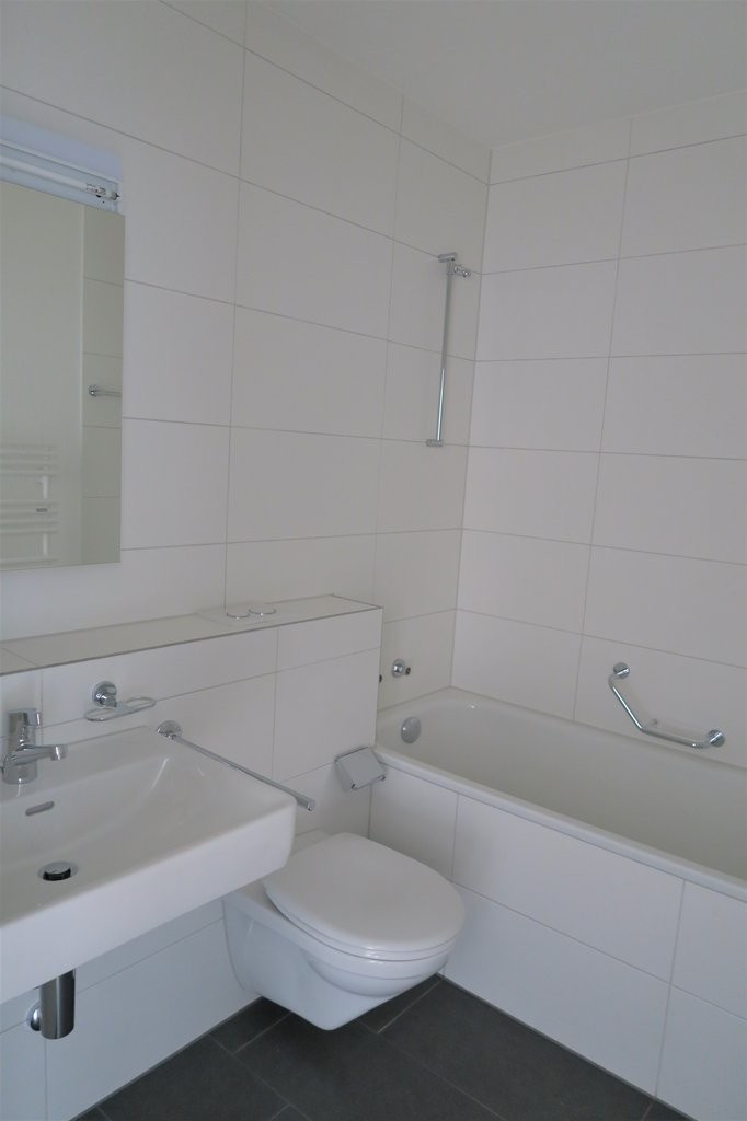 - Plattenboden in Badezimmer und Küche