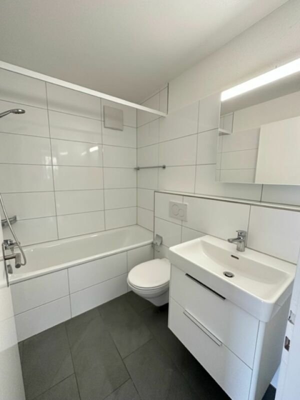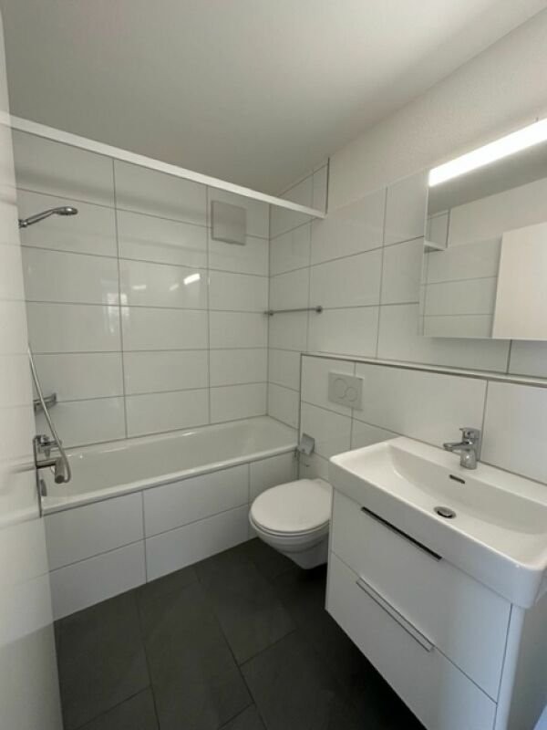 Die Wohnung verfügt über eine grosse Küche welche direkten Zugang auf den grossen Balkon hat. Die Böden sind in der ganzen Wohnung aus Parkett und in den Nasszellen und Küche sind Plattenböden. Badezimmer mit WC, Lavabo und Badewanne.