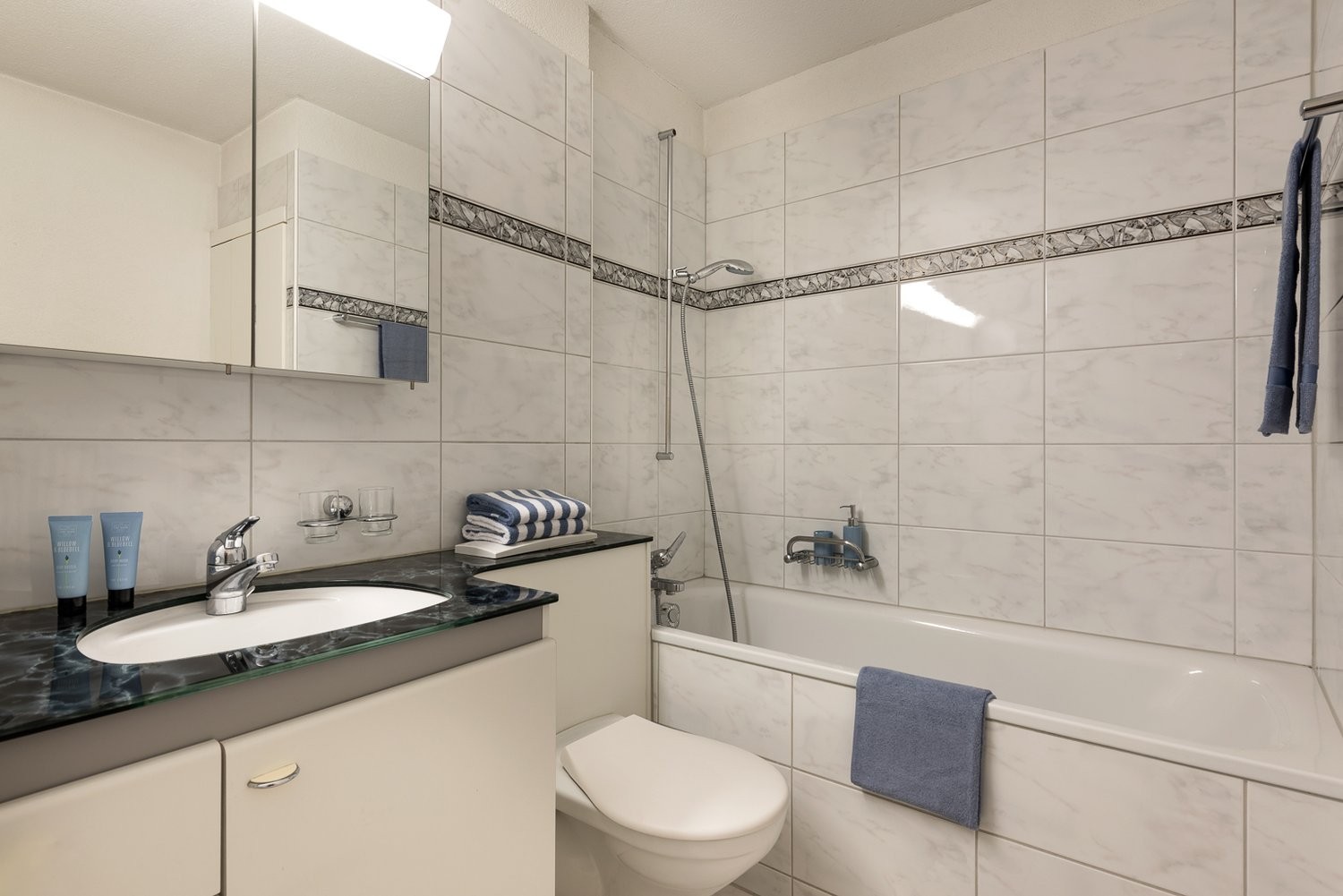- Grosses Badezimmer mit Badewanne und Doppellavabo