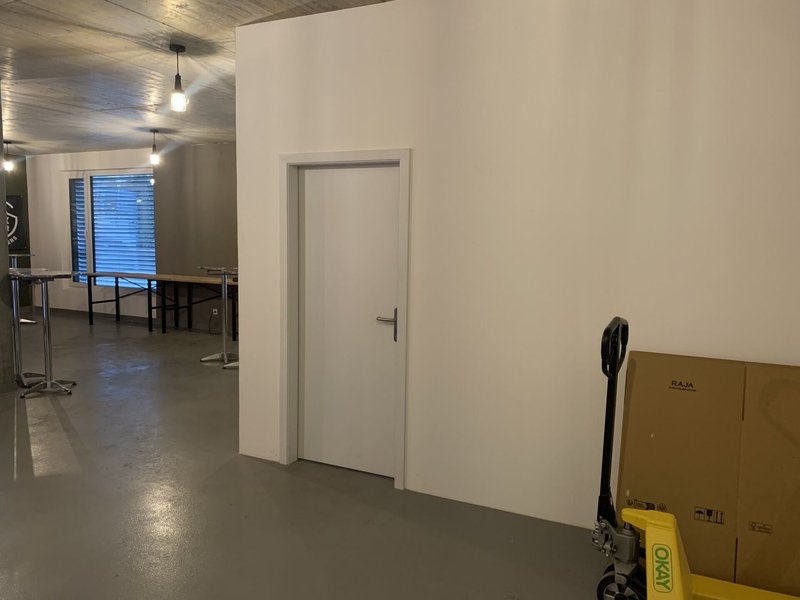 Ausstattung: Grosszügige Fensterfronten sorgen für lichtdurchflutete Räumlichkeiten, die sich in einen offenen Hauptbereich, ein separater Raum (z.B. als Lagerraum, Büro oder Sitzungszimmer nutzbar) sowie einen eigenen Sanitärbereich unterteilen. Auch eine Nische für einen Küchenausbau ist vorhanden.