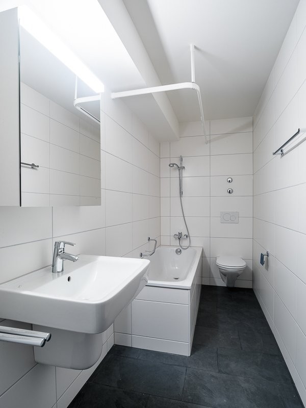 - Badezimmer mit Badewanne, keramische Bodenplatten