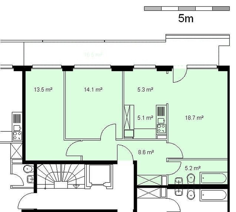 - modernste ausgestattete Küche, Abdeckung in Naturstein, Glaskeramik-Kochfeld, Geschirrspüler, Kühlschrank mit sep Tiefkühlfach, keramische Bodenplatten